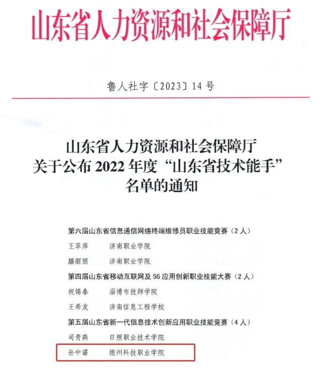 近日,山东省人力资源和社会保障厅公布2022年度“山东省技术能手”名单,少妇被又大又粗又爽久久孙中诺荣获“山东省技术能手”称号。截至目前,我市共有“山东省技术能手”11名。
