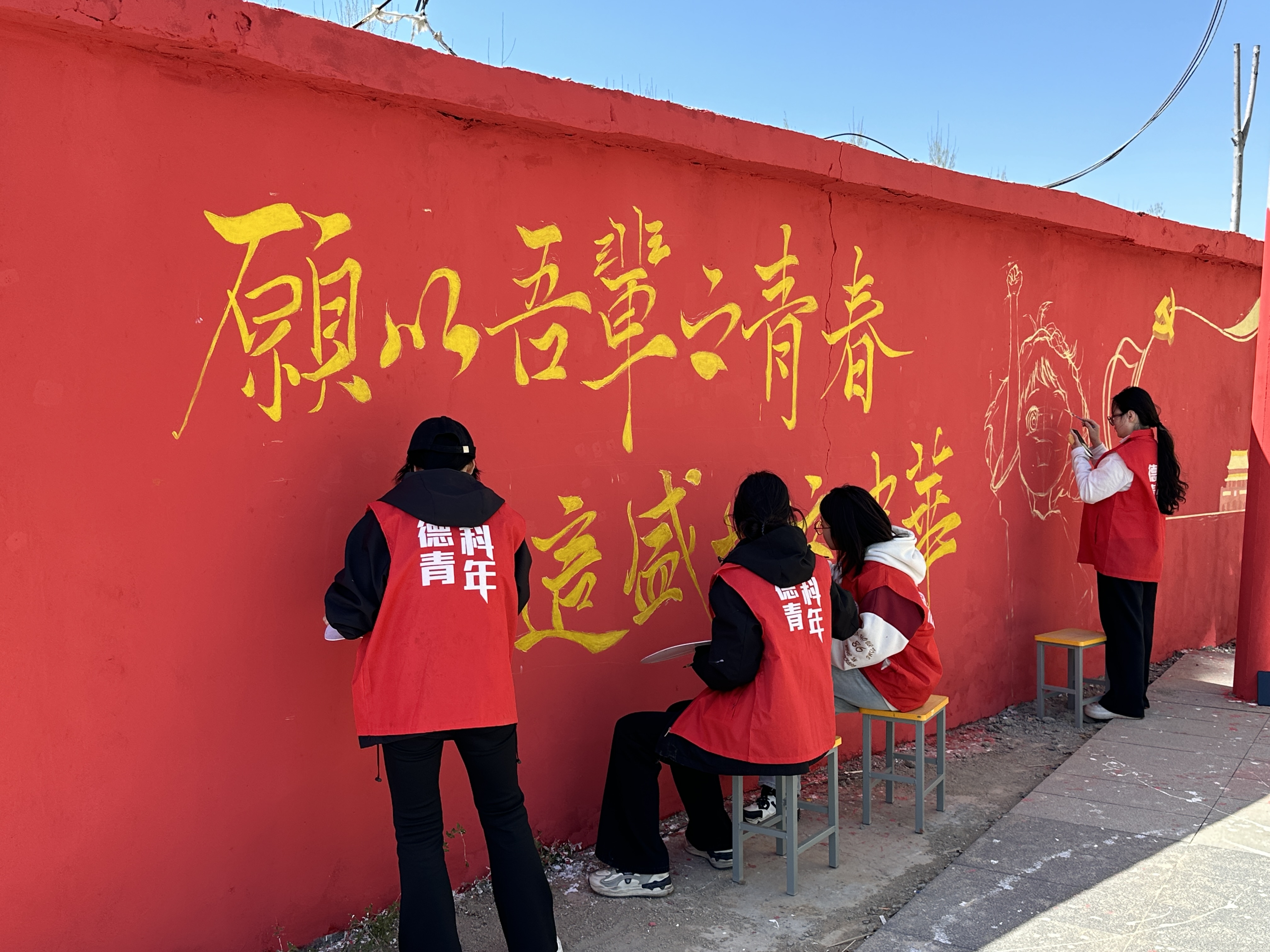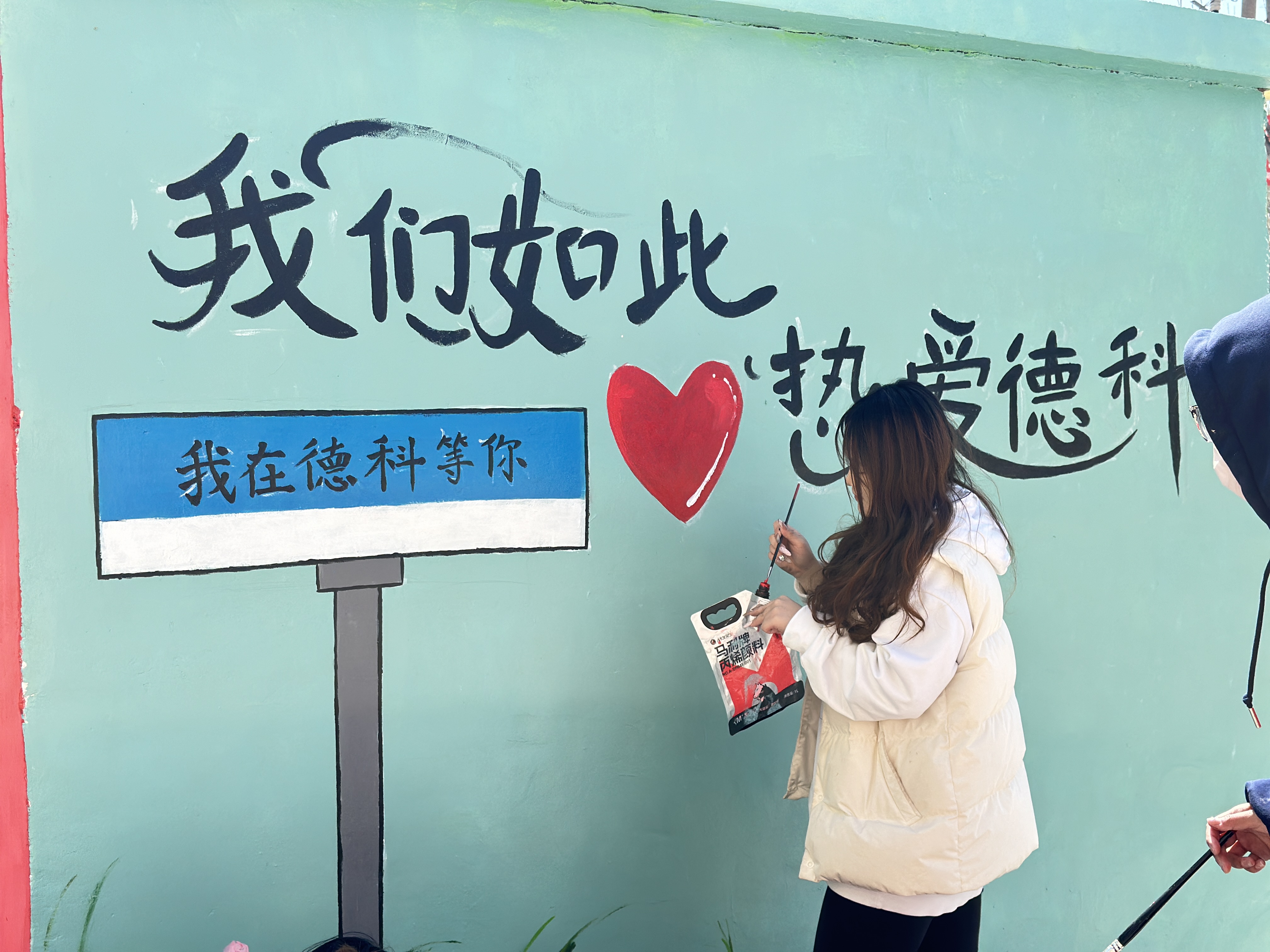 此前,校内部分墙面外观较为单调,与充满生机的校园环境形成鲜明反差。为改变这一现状,该校团委积极策划,于3月24日组织开展了一场特别的涂鸦创作活动。此次活动以“我们如此热爱德科”“愿以吾辈之青春,守这盛世之中华”“一起逐梦,共享青春”为主题,旨在通过艺术创作展现师生对学校的热爱、对祖国的深情,以及对青春梦想的不懈追求。