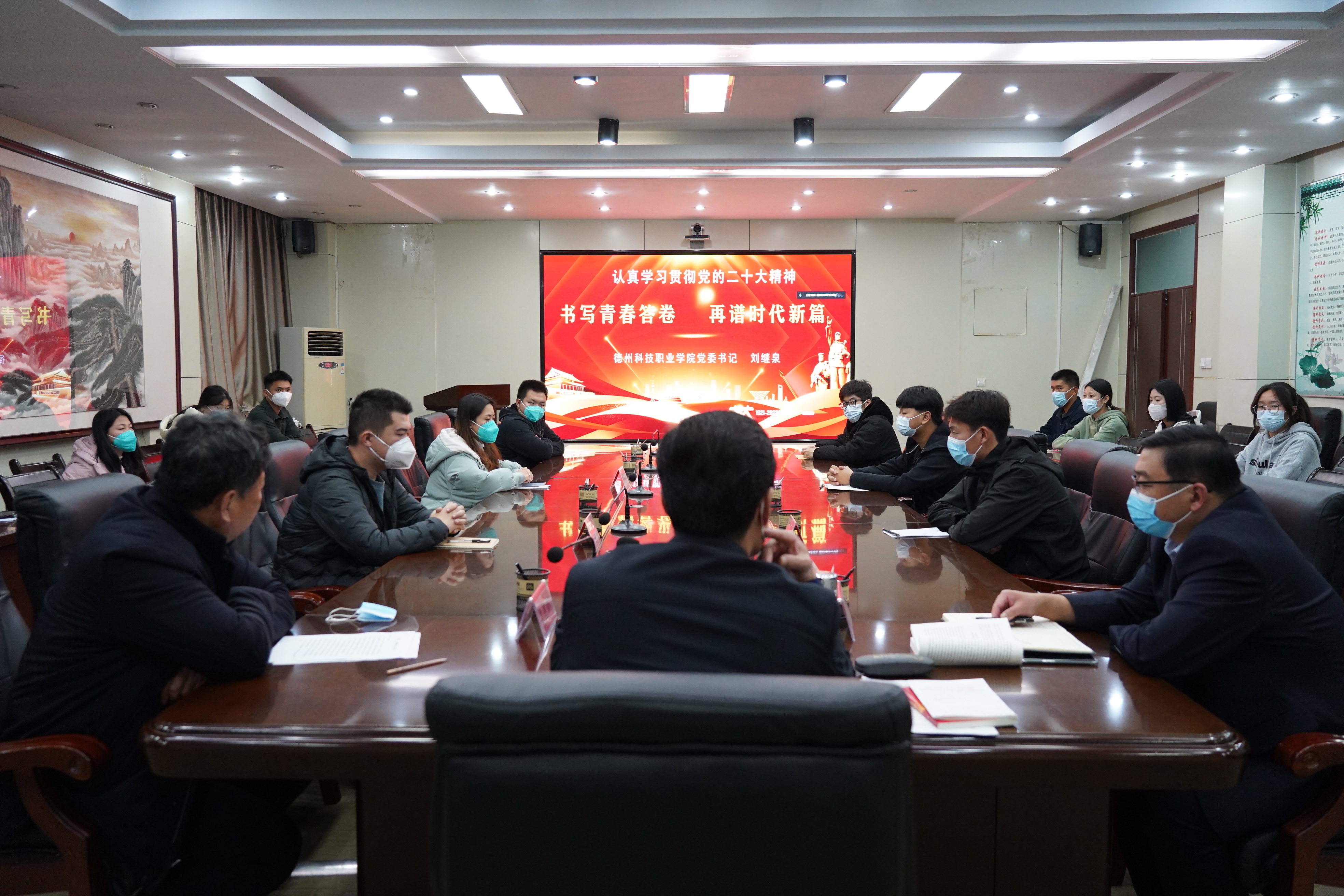 为深入学习宣传贯彻党的二十大精神,11月16日下午,德州市市属学校党的二十大精神宣讲团成员、学院党委书记刘继泉采取线上线下相结合的方式,为师生作党的二十大精神宣讲报告。学院党委副书记、副院长朱纪辉主持宣讲报告会。