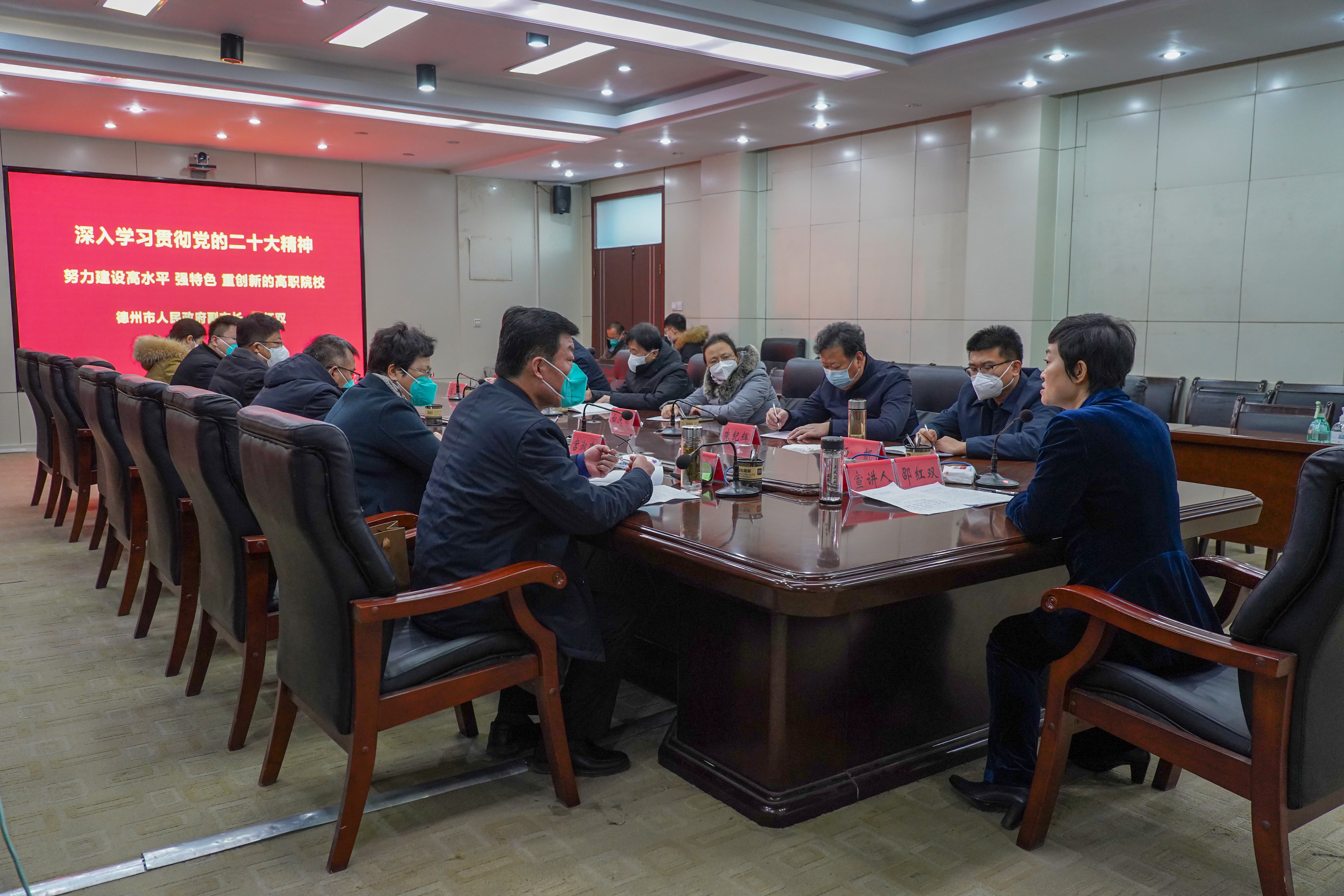 刘继泉在总结讲话时指出,学院要认真落实党的二十大精神和邵市长对学院发展的期望要求,要切实提高政治站位,认真开展学习宣讲工作,将党的二十大精神的学习宣讲融入日常教育教学、管理服务过程中,创新学习形式、突出宣讲效果,掀起浓厚的学习热潮。要紧密结合专题学习,全力抓好贯彻落实工作,坚持目标导向、问题导向、战略思维,将党的二十大精神融入到党的建设、思想政治教育、教育教学、师德师风各项工作中,以实际行动将党的二十大精神落到实处。要系统谋划发展目标,科学制定重点任务,不断提升办学水平、打造办学特色,为培养更多高素质技术技能人才、服务德州经济社会发展,作出新的更大贡献。