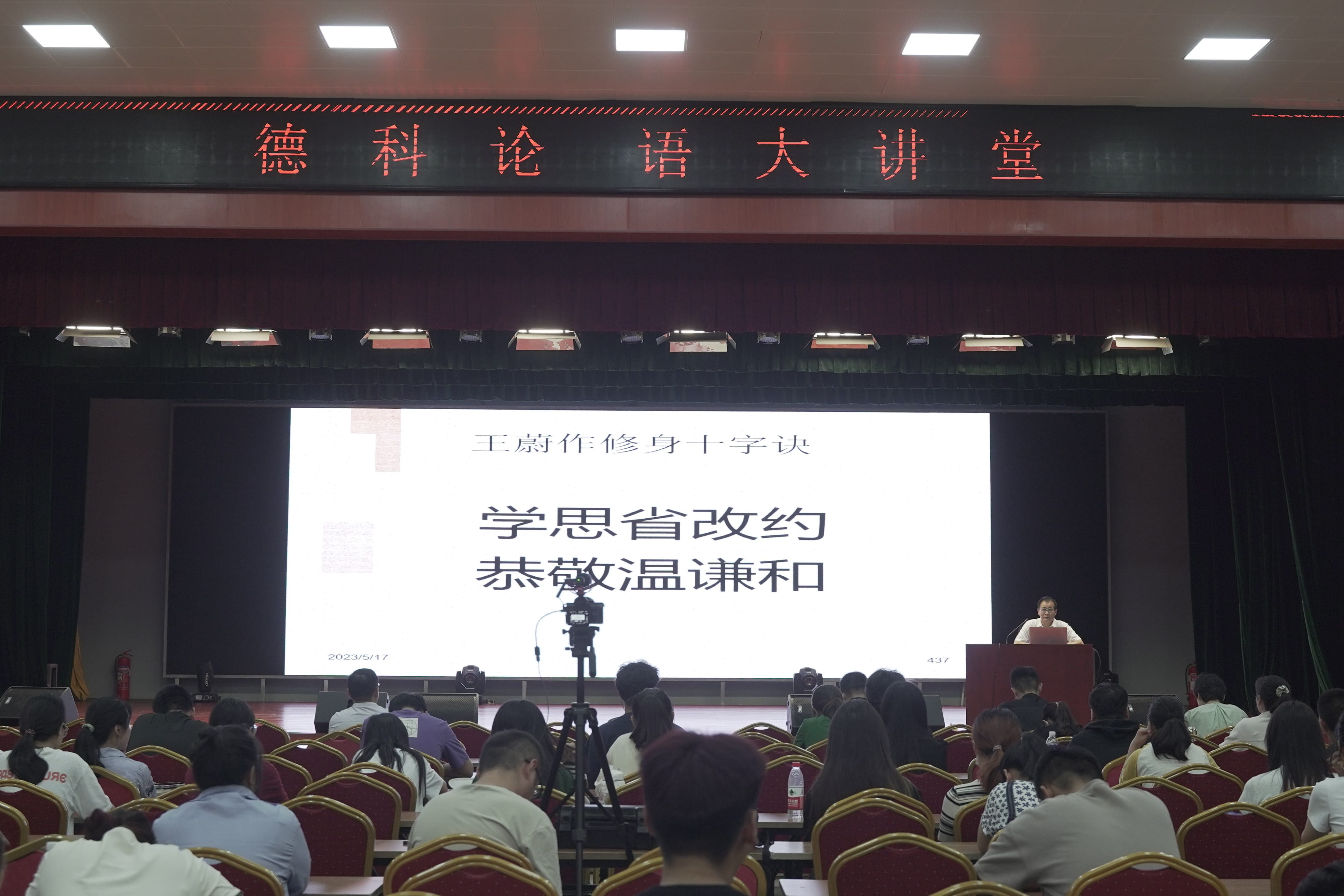 5月17日下午,学院第三期“德科论语大讲堂”在大禹大讲堂开讲。山东财经大学教授,尼山世界儒学中心特聘专家,山东省立德树人学会论语专业委员会主任,德科国学研究院院长、乡村振兴学院院长王蔚教授为师生作第三期论语讲座。学院党委书记刘继泉主持讲座。学院党委宣传统战部、教务处、图书馆、学生处、科研处、公寓中心,以及互联网数字经济学院的230余名师生在现场聆听讲座,青岛校区师生通过网络同步观看。
