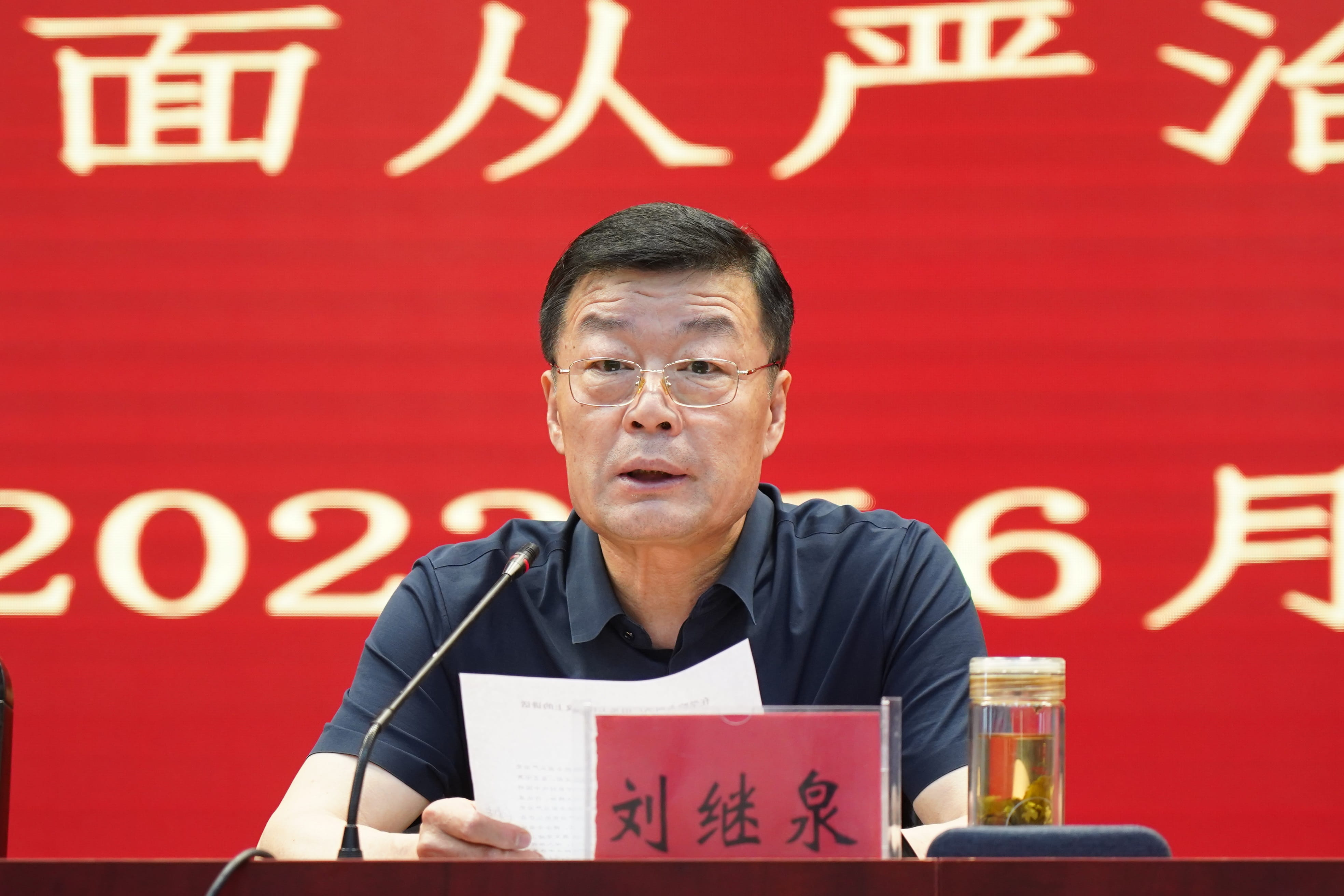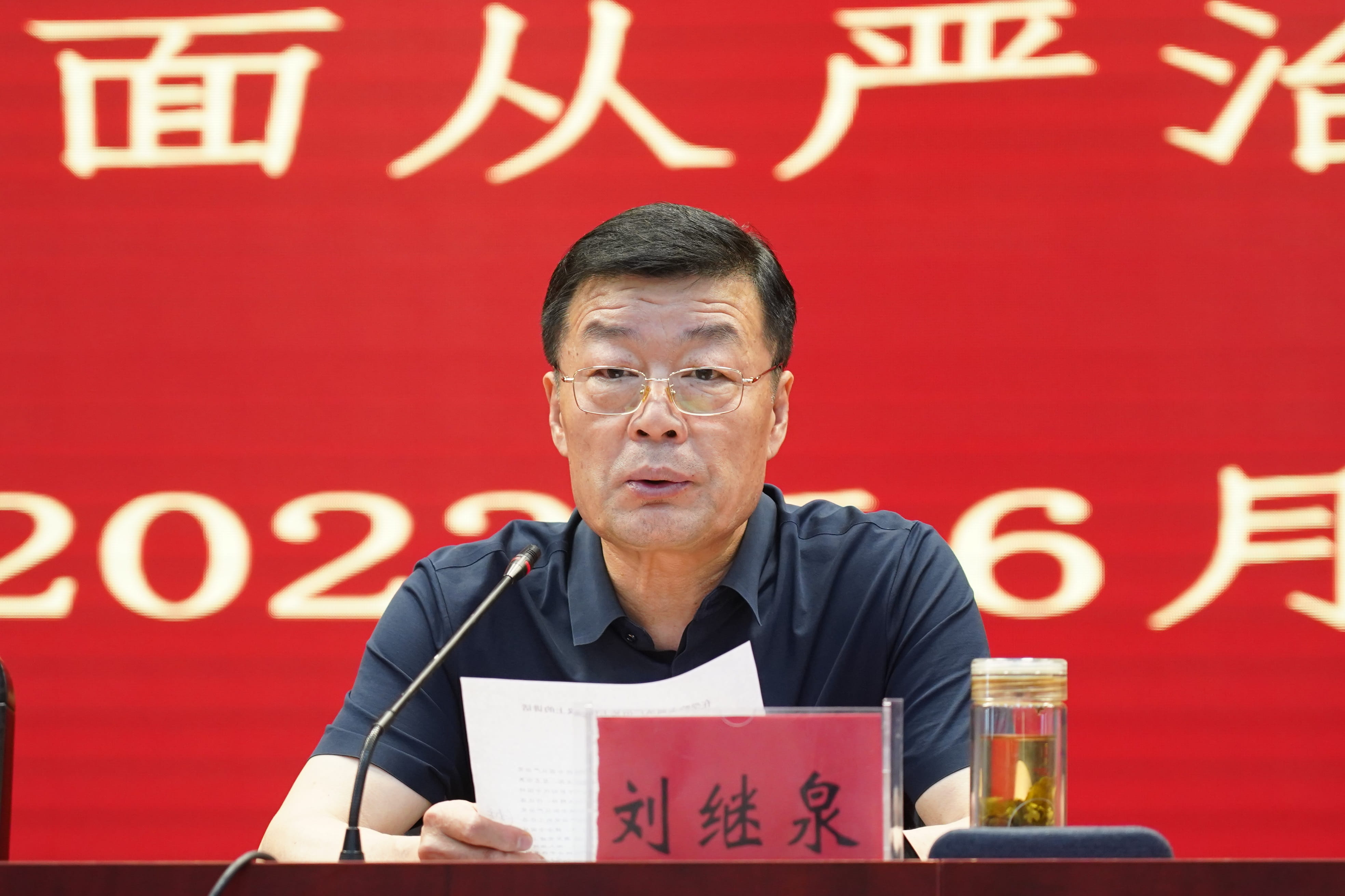 为认真贯彻党的二十大精神,全力落实全面从严治党重点工作任务,进一步提升学院党建工作质量和水平,6月9日下午,学院召开2023年全面从严治党工作会议。学院党委书记刘继泉出席会议并讲话。党政班子全体成员、副处级以上干部、各党支部书记、全体党员参加会议。学院党委副书记、执行院长宫淑瑰主持会议。