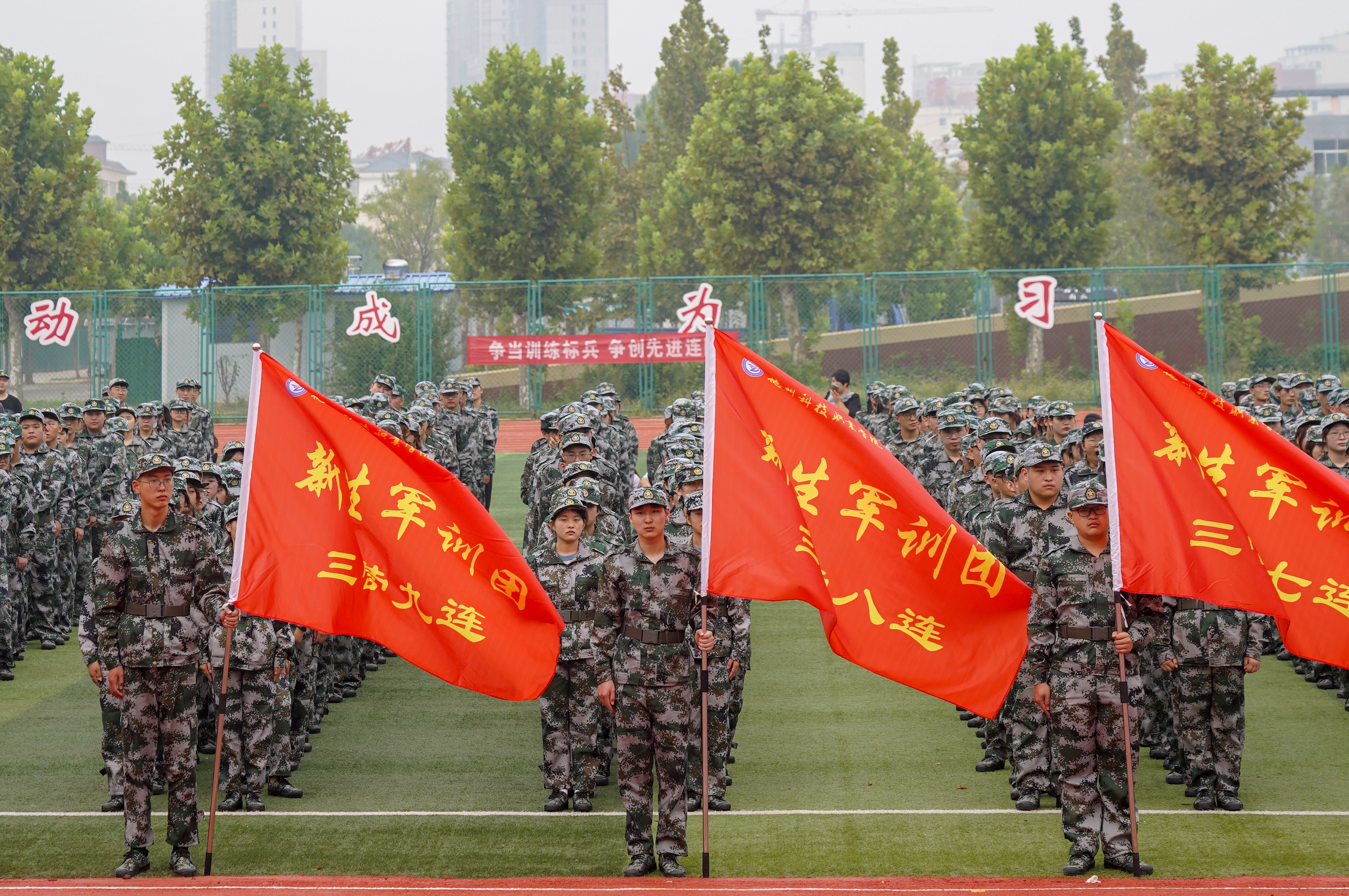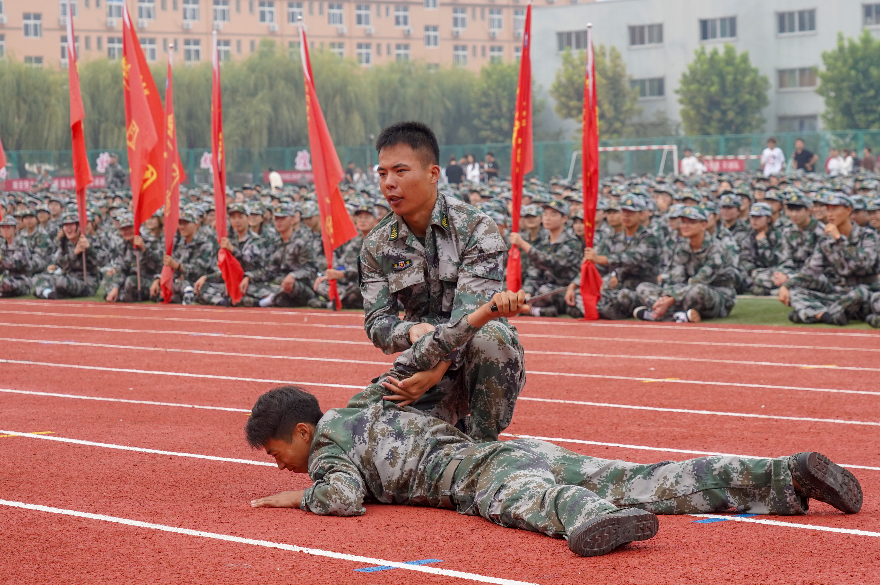 根据大会议程,张祖军向军训团授旗;2023级新生代表作表态发言;全体承训教官们还向2023级新生进行了军事训练科目内容展示。