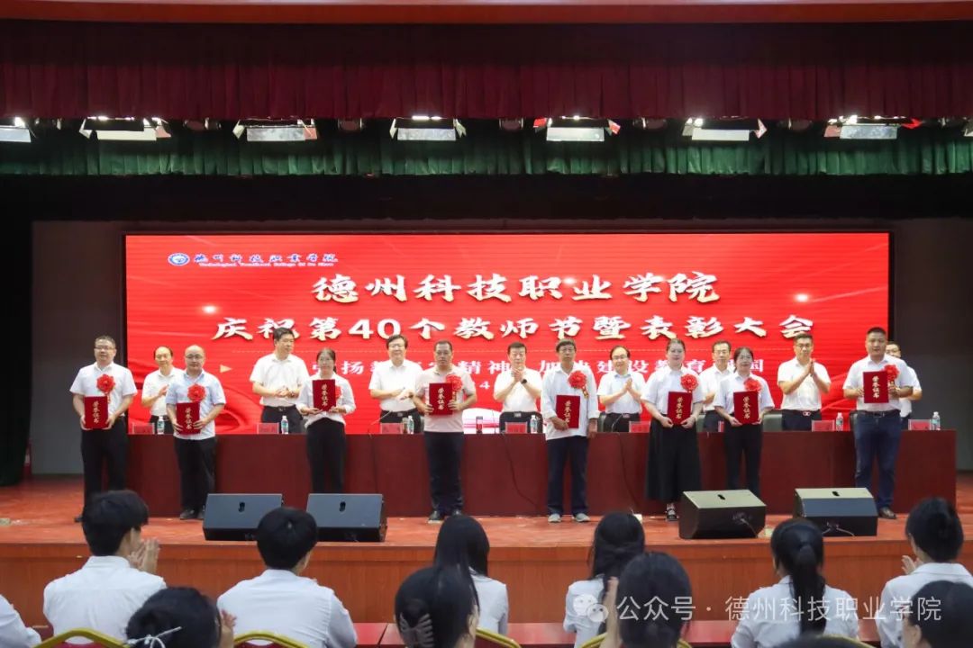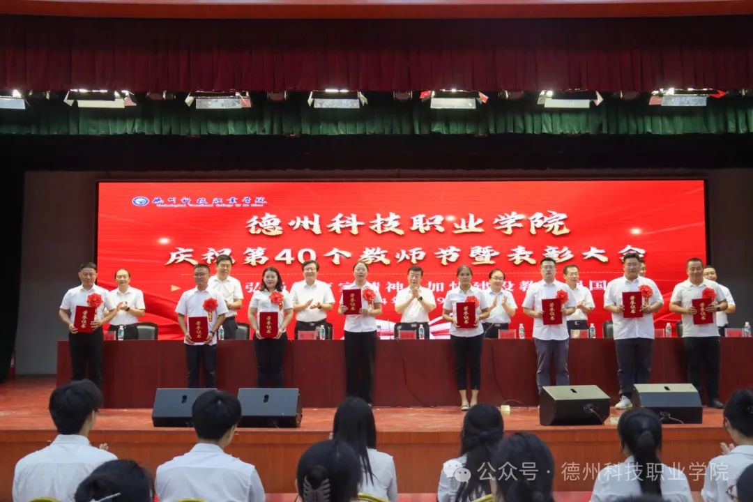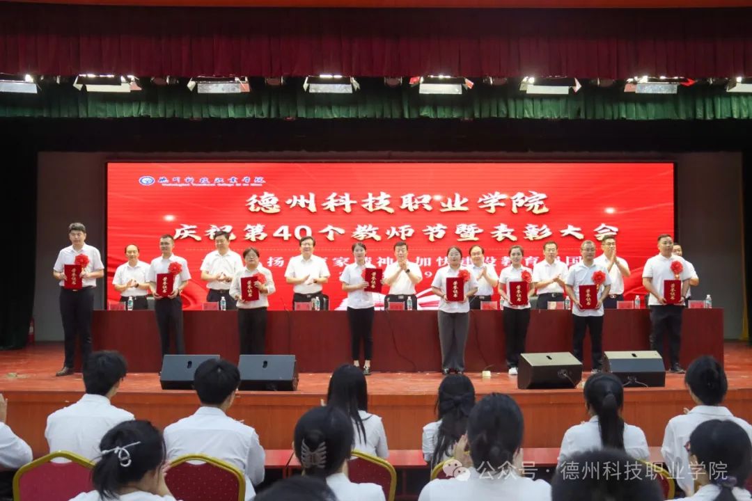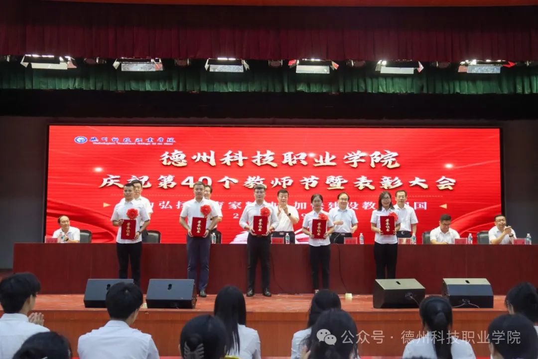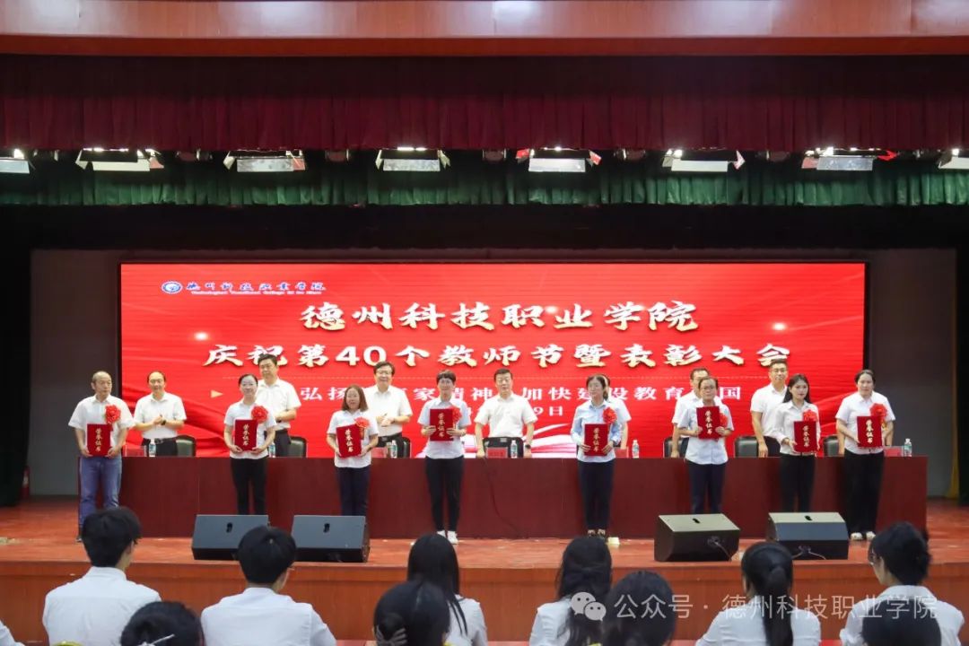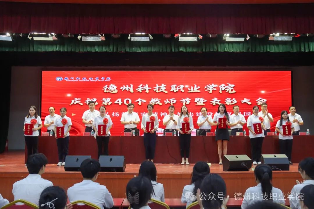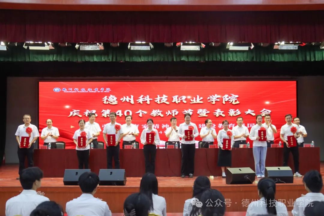 “共兴尊师风尚,全面展示人民教师时代风采”“教诲如春风,师恩似海深”......步入仲秋的德科校园内,庆祝第40个教师节的横幅标语随处可见,处处洋溢着尊师重教的浓厚氛围。会场里,党委委员、副校长周伟宣读了学校关于表彰师德模范、优秀教师、优秀教育工作者、优秀辅导员的决定。