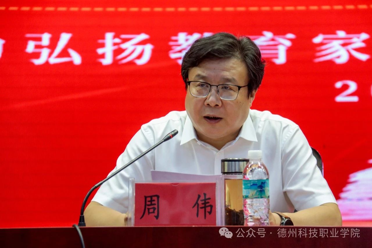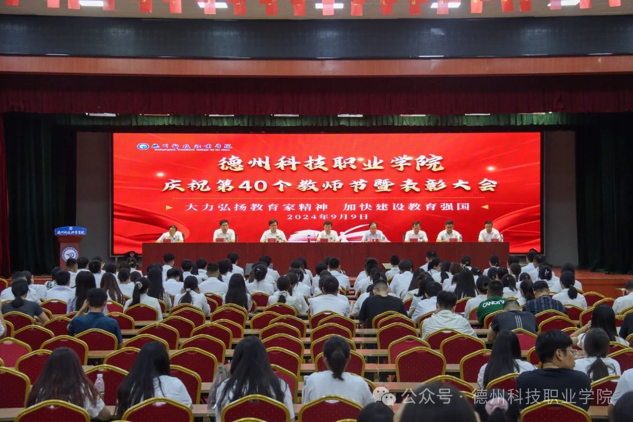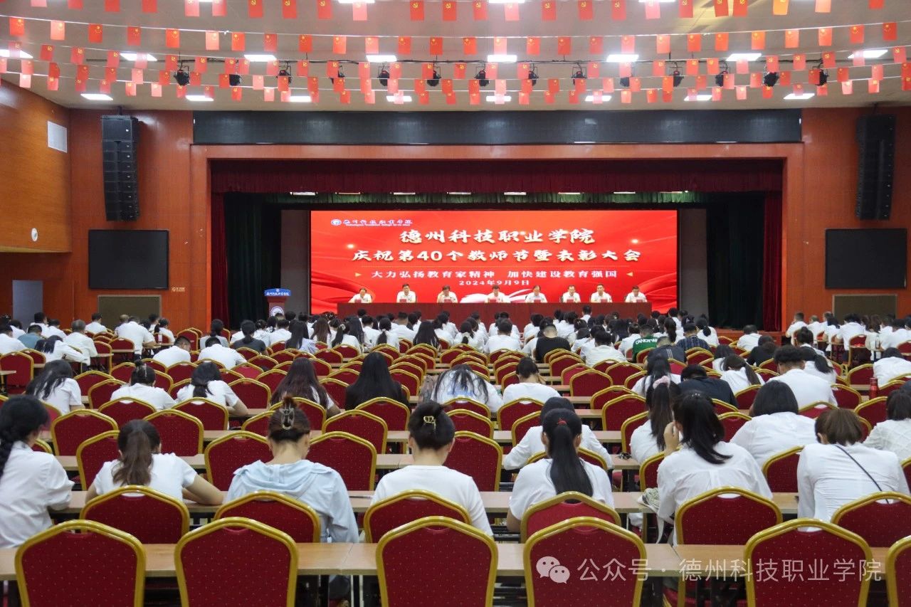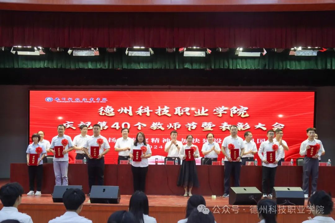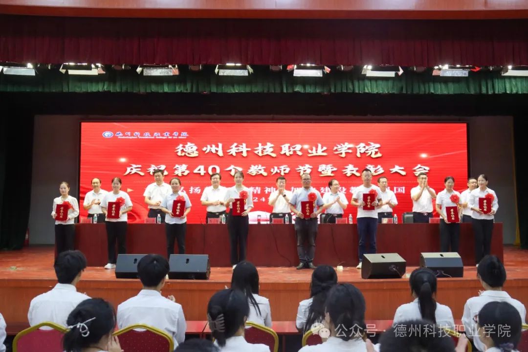 “共兴尊师风尚,全面展示人民教师时代风采”“教诲如春风,师恩似海深”......步入仲秋的德科校园内,庆祝第40个教师节的横幅标语随处可见,处处洋溢着尊师重教的浓厚氛围。会场里,党委委员、副校长周伟宣读了学校关于表彰师德模范、优秀教师、优秀教育工作者、优秀辅导员的决定。