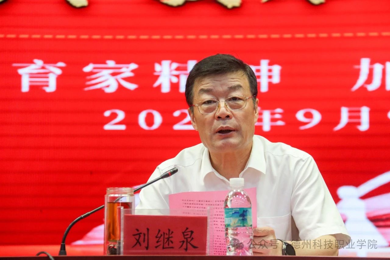 刘继泉指出,全体教师、教育工作者要坚定理想信念,不断增强立德树人的责任感和使命感,自觉做中国特色社会主义的坚定信仰者和忠实实践者;要积极参加业务培训,拓宽视野,更新知识,不断提高业务能力和教育教学质量,努力成为业务精湛、学生喜爱的高素质教师;要发扬“自强不息,敢为人先”的德科精神,落实立德树人,不断提高教育质量,传承好重教尊师的美德,聚力办人民满意教育。