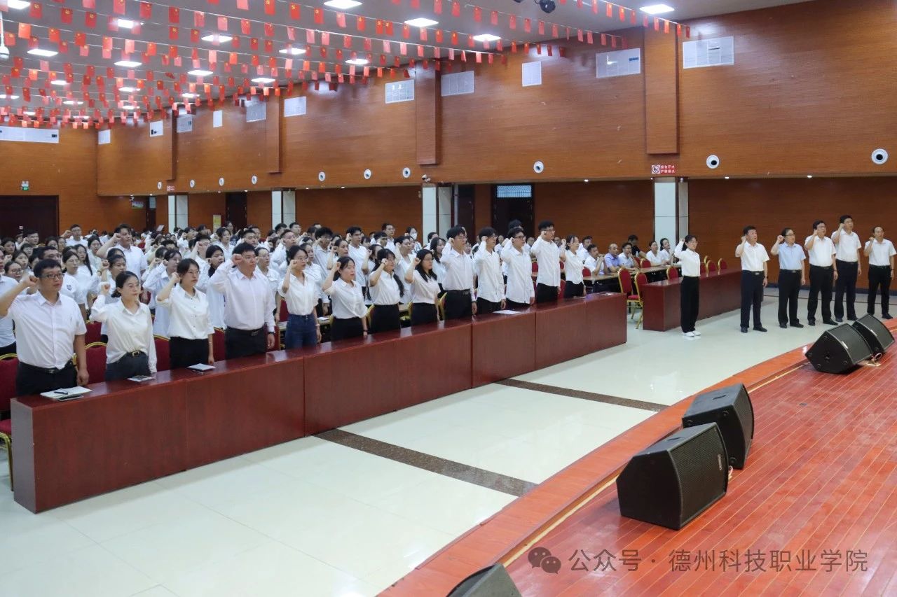 为进一步弘扬教育家精神,激励全校教师树立“爱岗敬业传师道、至诚报国育新人”的责任感和使命感,在领誓人的带领下,出席领导同2024年新入职教师代表一道,紧握右拳,进行庄严的教师宣誓。