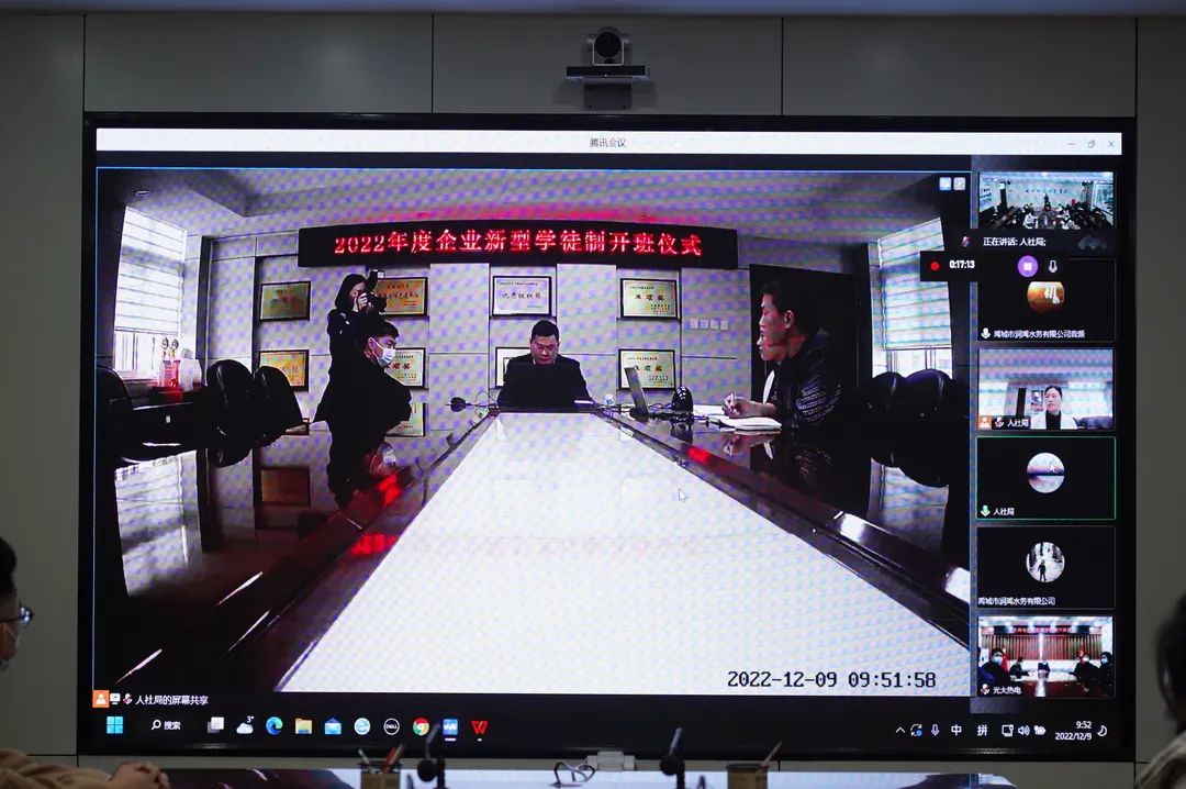 为进一步探索产教融合新形式、人才培养新机制,加强高技能人才队伍建设,12月9日上午,禹城市2022年企业新型学徒制开班仪式以线上方式举行。禹城市委组织部副部长、市人社局党组书记、局长孙建勇出席仪式并宣布2022年企业新型学徒制培训班正式启动。学院党委副书记、副院长朱纪辉,院长助理、校企合作处处长孙君,禹城市光大热电有限公司、禹城市润禹水务有限公司、山东诚乾置业集团有限公司负责人出席开班仪式。开班仪式由禹城市人社局党组成员、副局长曹红霞主持。