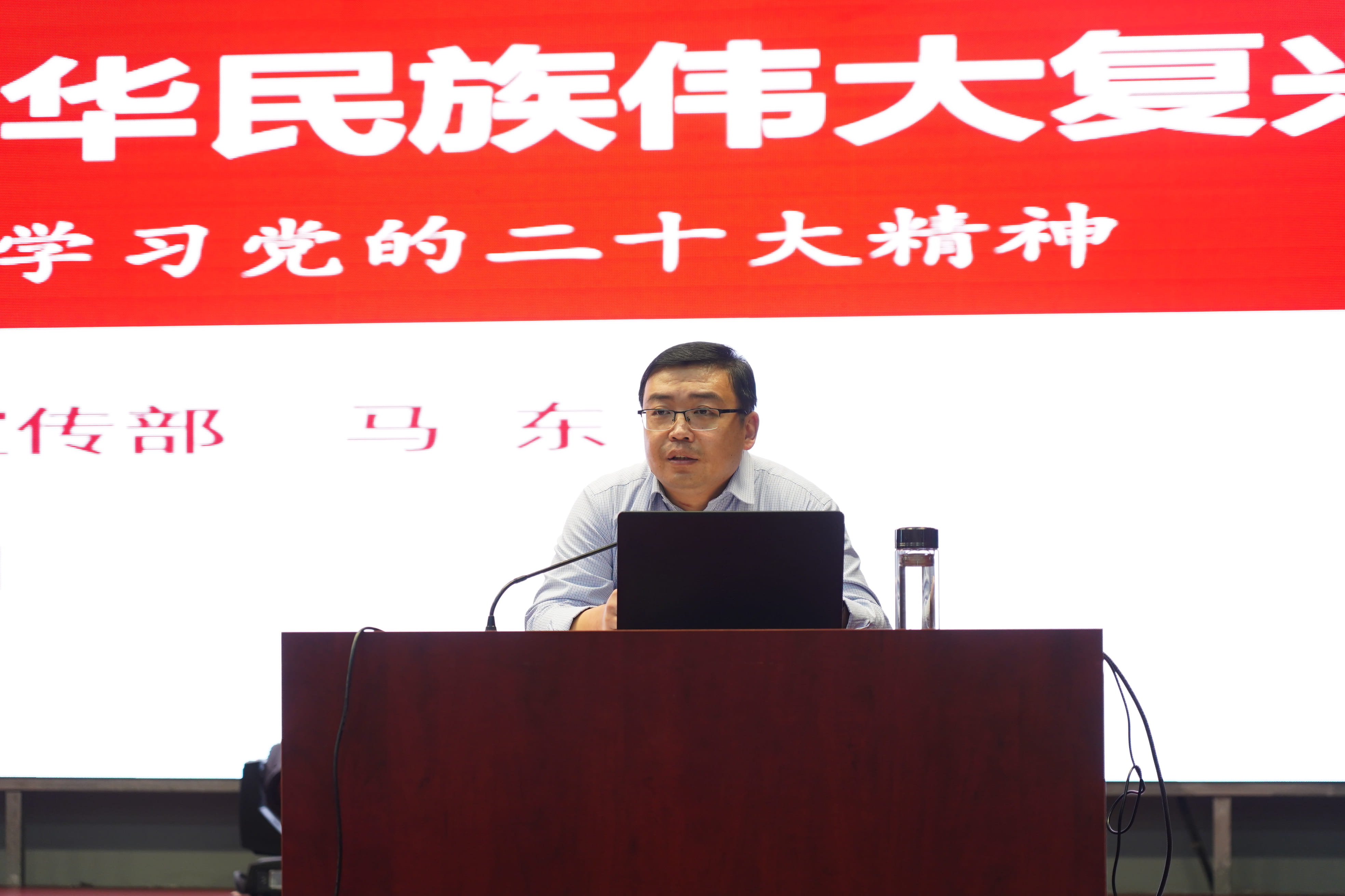 马东在宣讲报告中指出,党的二十大是在全党全国各族人民迈上全面建设社会主义现代化国家新征程、向第二个百年奋斗目标进军的关键时刻召开的一次十分重要的大会。党的二十大报告是一篇闪耀着马克思主义真理光芒的光辉文献,为全党全军全国各族人民在党的旗帜下团结奋斗,谱写全面建设社会主义现代化国家崭新篇章提供了根本指引,作为青年大学生要自觉担起时代责任、牢记奋斗使命,聚焦成人成长成才目标,自觉用党的二十大精神武装头脑,主动融入到学习报国、实践报国的征程上。