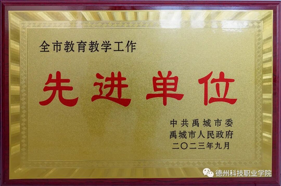 近日,禹城市委、市政府召开庆祝教师节大会暨“书香禹城”建设推进会议。大会上,对2022-2023学年全市教育教学先进单位和先进个人进行了表彰。在全院上下的共同努力下,学院荣获“禹城市教育教学先进单位”称号,互联网数字经济学院教师孙中诺、德州机电工程学校教师白庆丽荣获“禹城市优秀教师”称号。