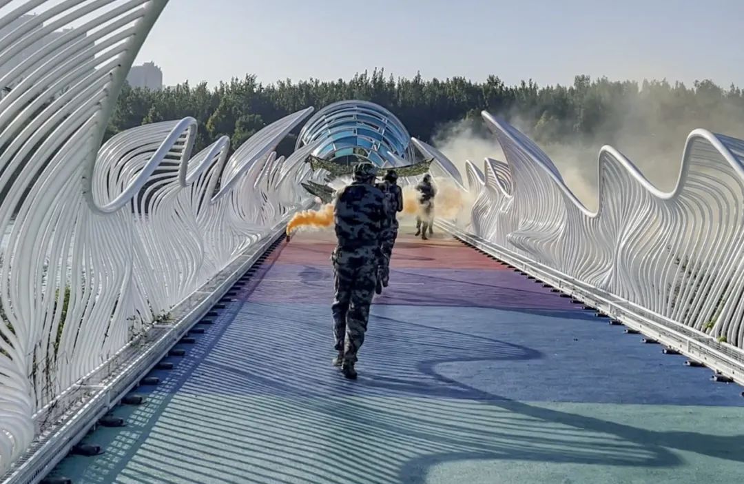 行军途中还安排了穿越毒瘴等模拟演练场景,在教官的指示下,前沿侦察小组灵活、迅速、整齐的完成了演练科目。整个拉练过程,各营军训新生队伍整齐有序,严守纪律,团结互助,以坚毅顽强的信念和积极向上的品质克服种种困难,圆满完成军训徒步拉练任务,展现了德科新生良好的军训素养、敢于挑战的精神风貌。