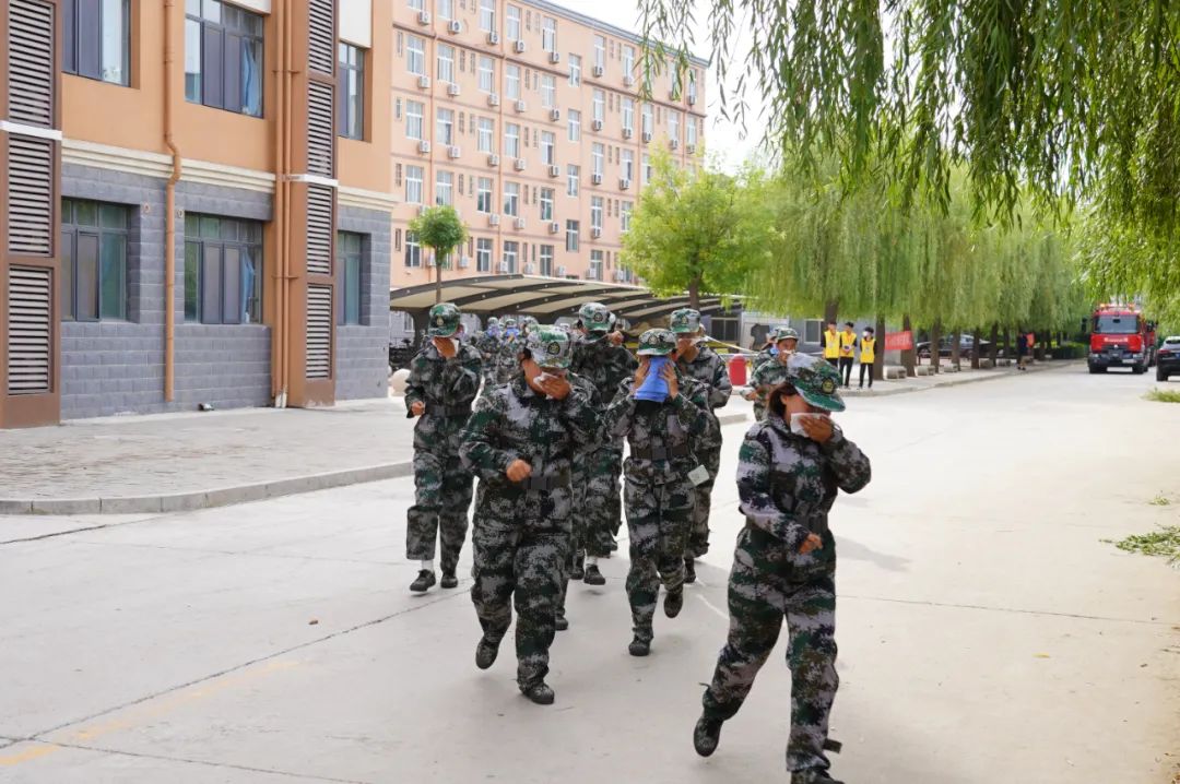 随着消防警报的拉响,宫淑瑰宣布消防疏散演练正式开始。 按照事先制定的火灾疏散救援综合演练实施方案,参演人员共分灭火组、救援组、救护组、疏散组、警戒组等。演练开始后,工作人员点燃烟雾弹,模拟宿舍楼内发生火情。辅导员在接到学生报告后立即赶往事故现场,并通知学生科长及系主任,通讯联络员第一时间报告主要负责人,总指挥立即启动消防应急预案;接到命令后,负责老师迅速组织学生进入紧急疏散状态,按照应急疏散演练方案设定逃生路线,捂住口鼻,低姿快速、有序逃离火灾现场;救援组观察好环境后,迅速在建筑外围架设云梯,搭建救生通道,成功营救楼内“被困学生”;救护救援组将楼内受伤人员抬上担架进行模拟送医治疗,并展开紧急处理和救治。整个过程有条不紊,各小组分工明确、紧密配合、相互协作,顺利完成疏散演练任务。 为巩固演练实践效果,赵毅在体育场还现场指导了2023级新生正确使用灭火器进行灭火实战操作,提高学生的消防应急能力。 秋季消防疏散演练暨消防安全教育活动的圆满完成,不仅增强了学院师生们的消防安全意识,也提高了自防自救、应对突发事件的能力,为有效预防消防事故打下了基础。下一步,学院将持续开展形式多样的消防安全教育活动,不断夯实安全根基,筑牢校园消防安全防线。 禹城市消防大队消防官兵、学院义务消防员,以及各二级院系学生科长、辅导员、全体2023级新生参加活动。