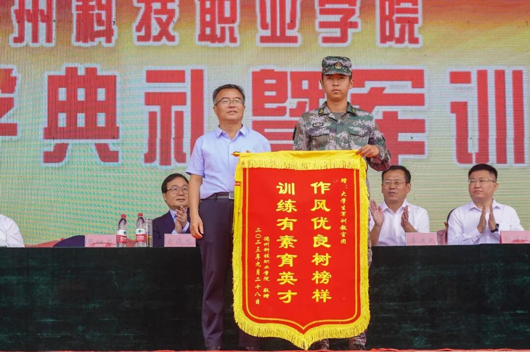 军训成果汇报结束后,张祖军向军训教官团授锦旗;军训团向张祖军交回军训团团旗。