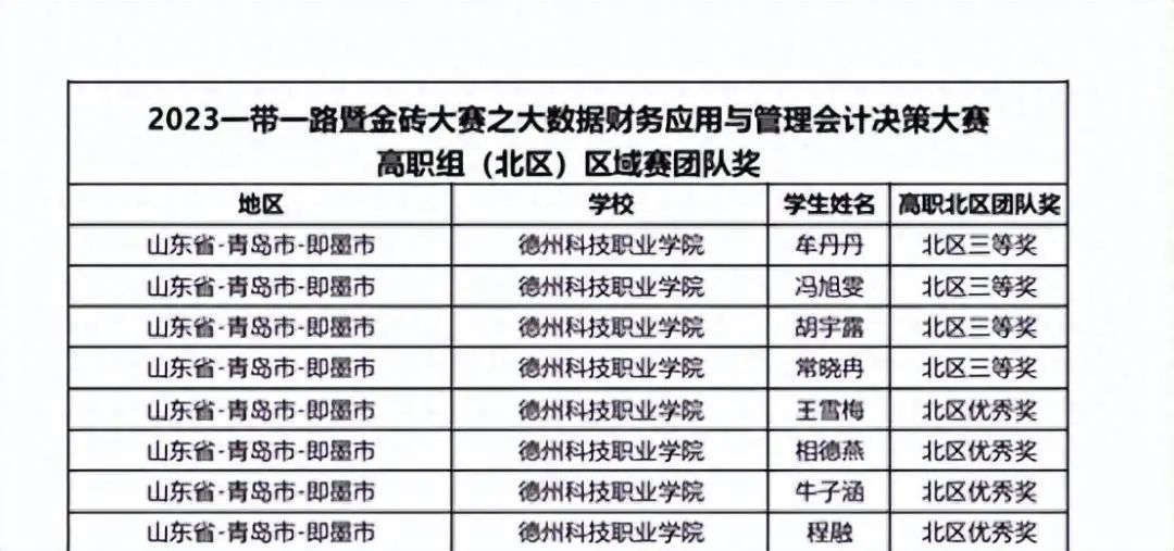 近日,2023年一带一路暨金砖国家技能发展与技术创新大赛顺利落下帷幕。经过层层选拔和激烈角逐,由学院继续教育系会计专业学生牟丹丹、冯旭雯等8名同学组成两支队伍分获(北区)三等奖和优秀奖。