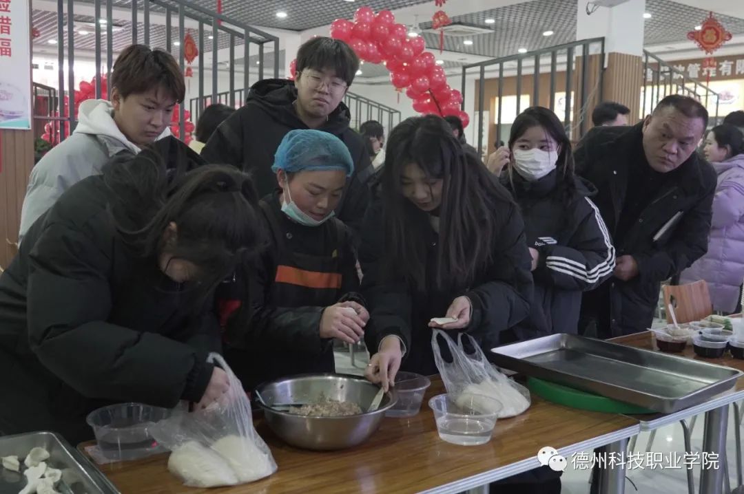 主题活动的座谈会环节结束后,刘继泉、宫淑瑰、张祖军等,与师生们一道前往学生第一餐厅包水饺迎冬至。