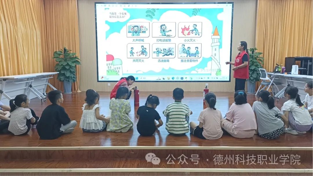 医学护理系“三下乡”志愿服务队成员带领小学生学习防火知识
