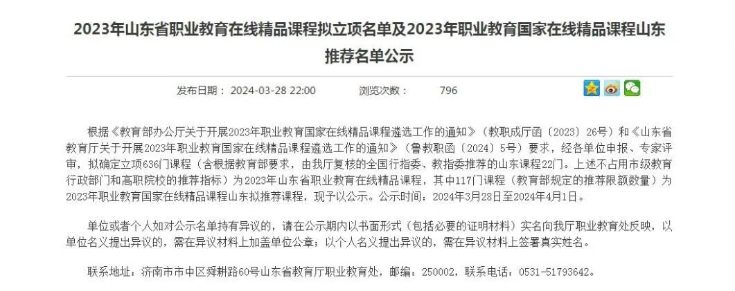 我校成功立项2023年山东省职业教育在线精品课程