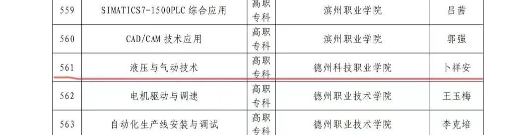 近日,山东省教育厅发布《2023年山东省职业教育在线精品课程拟立项名单及2023年职业教育国家在线精品课程山东推荐名单公示》,我校智能工程学院教师卜祥安负责的课程团队开发的《液压与气动技术》一门课程,成功立项2023年山东省职业教育在线精品课程。