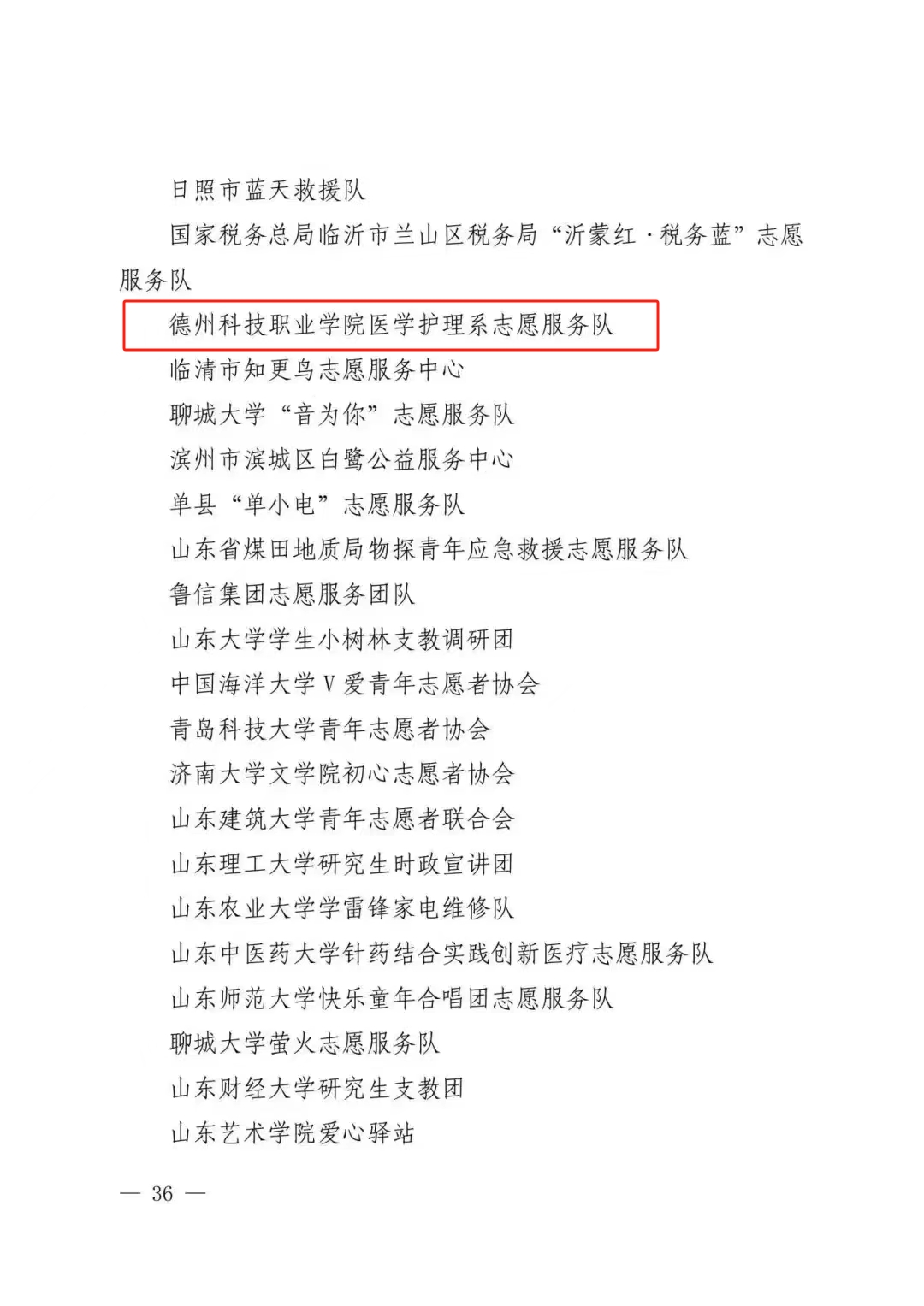 近日,共青团山东省委公布《关于表彰2023-2024年度“山东青年五四先进集体”“山东青年五四先进个人”的决定》,授予50个集体山东省青年志愿服务先进集体称号。其中,学校医学护理学院志愿服务队获评“山东省青年志愿服务先进集体”称号。
