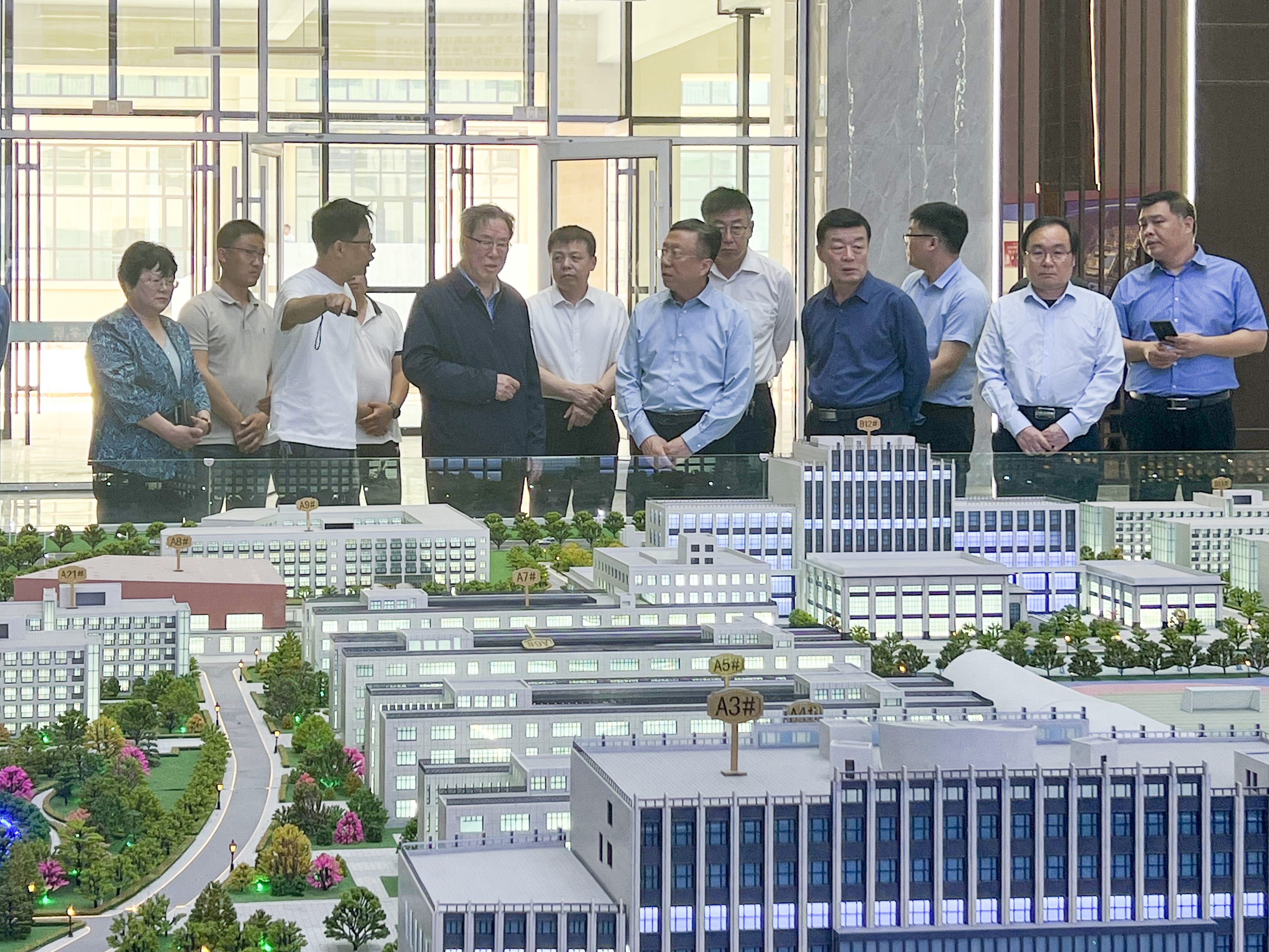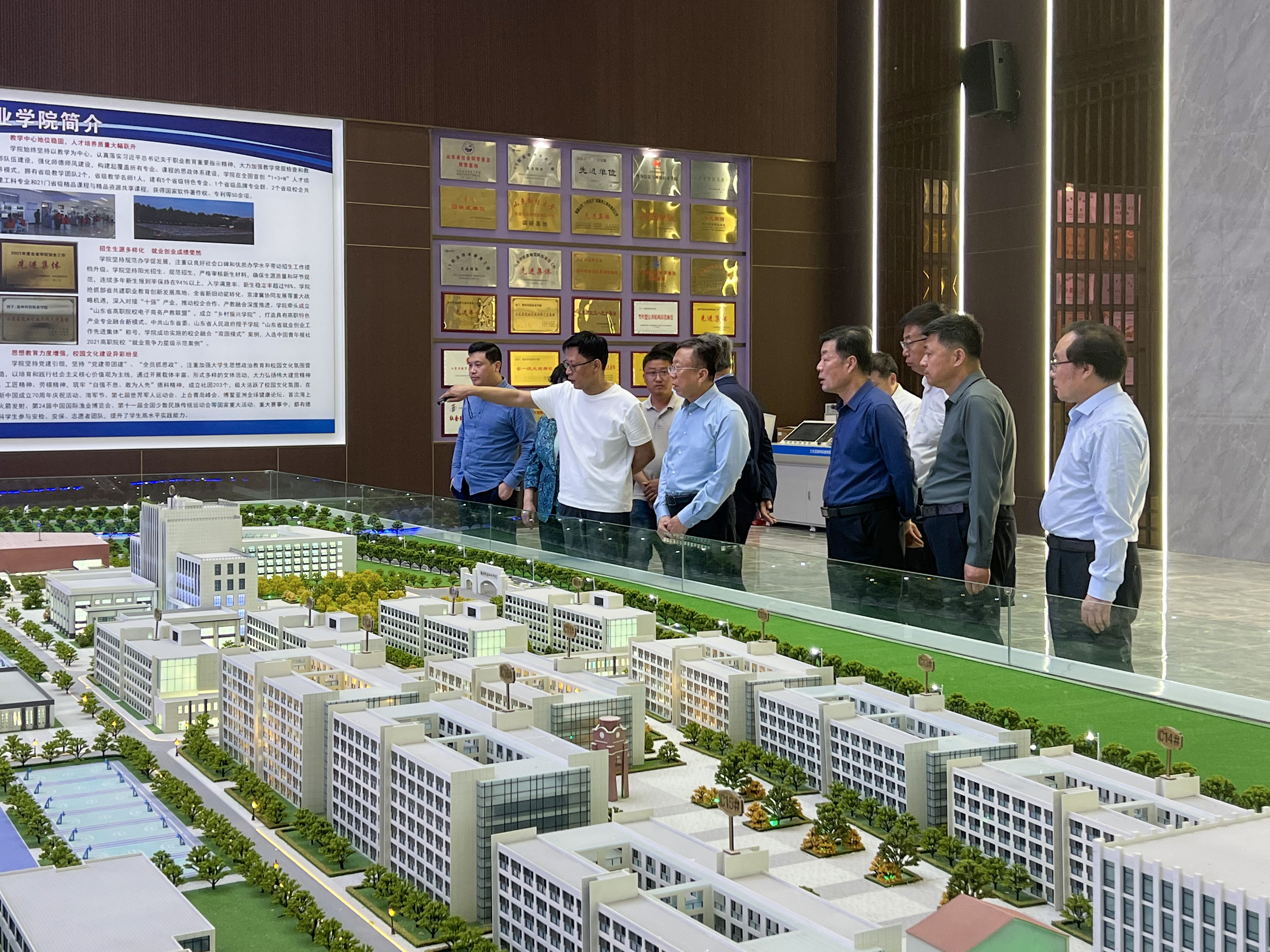 调研中,陈晓强实地走访察看了行政办公楼、图书馆、教学楼、学生公寓、学生食堂等重点部位和场所的建设情况,听取了德州校区项目负责人关于工程施工进度、基础设施建设、质量安全保障、消防工程管理、景观绿化布局等最新进展情况的详细汇报。通过现场查看沙盘模型、规划图,了解新校区项目总体布局和规划等有关情况,询问项目当前和下一步的工作计划,陈晓强对项目建设提出了指导意见。
