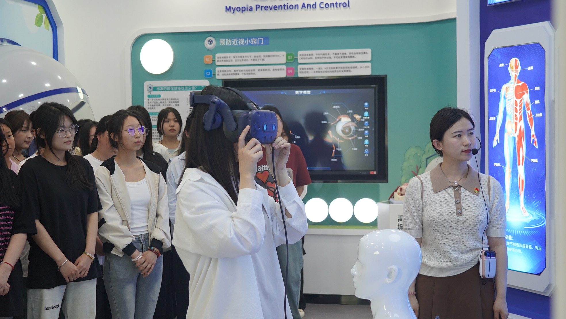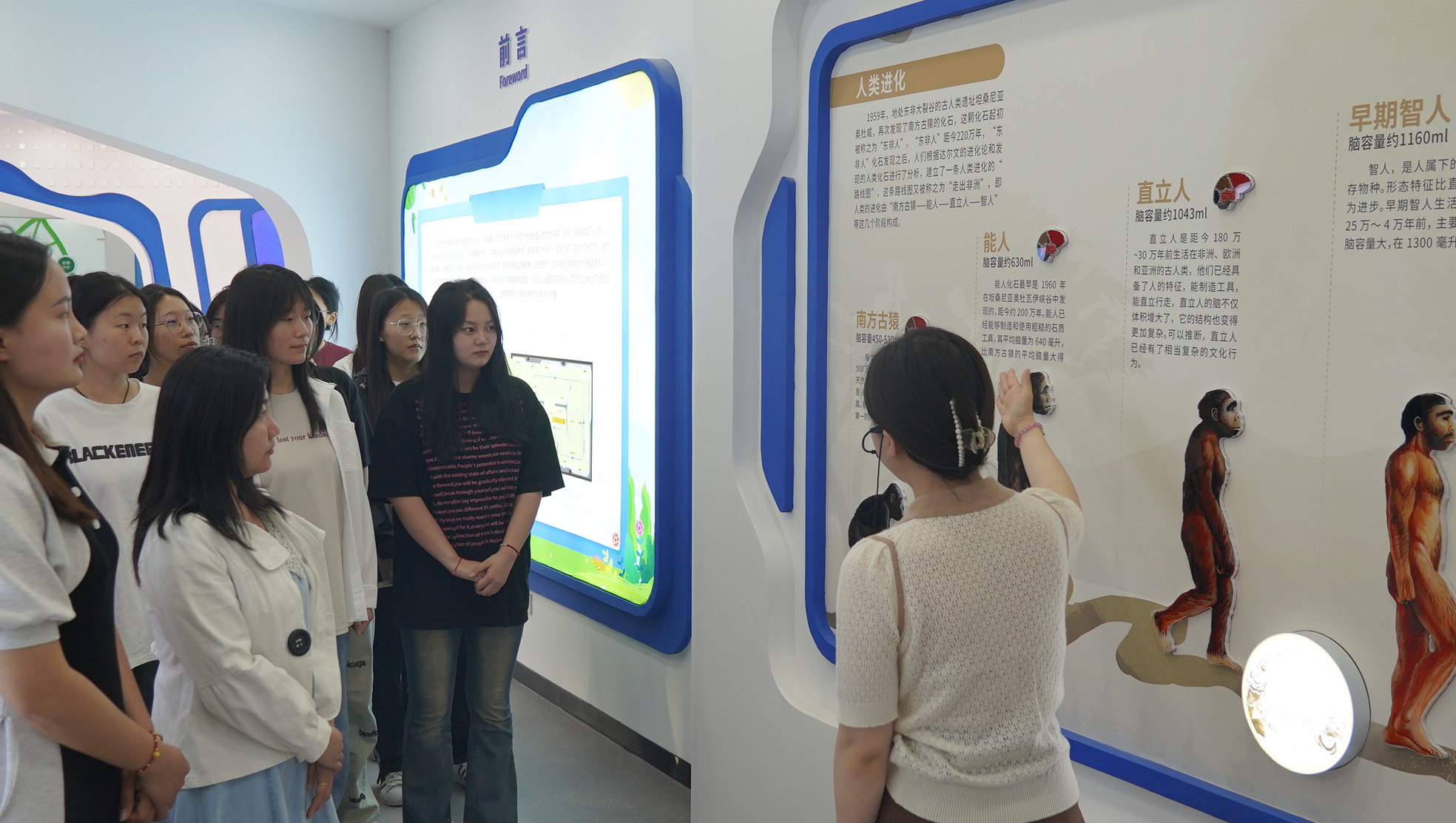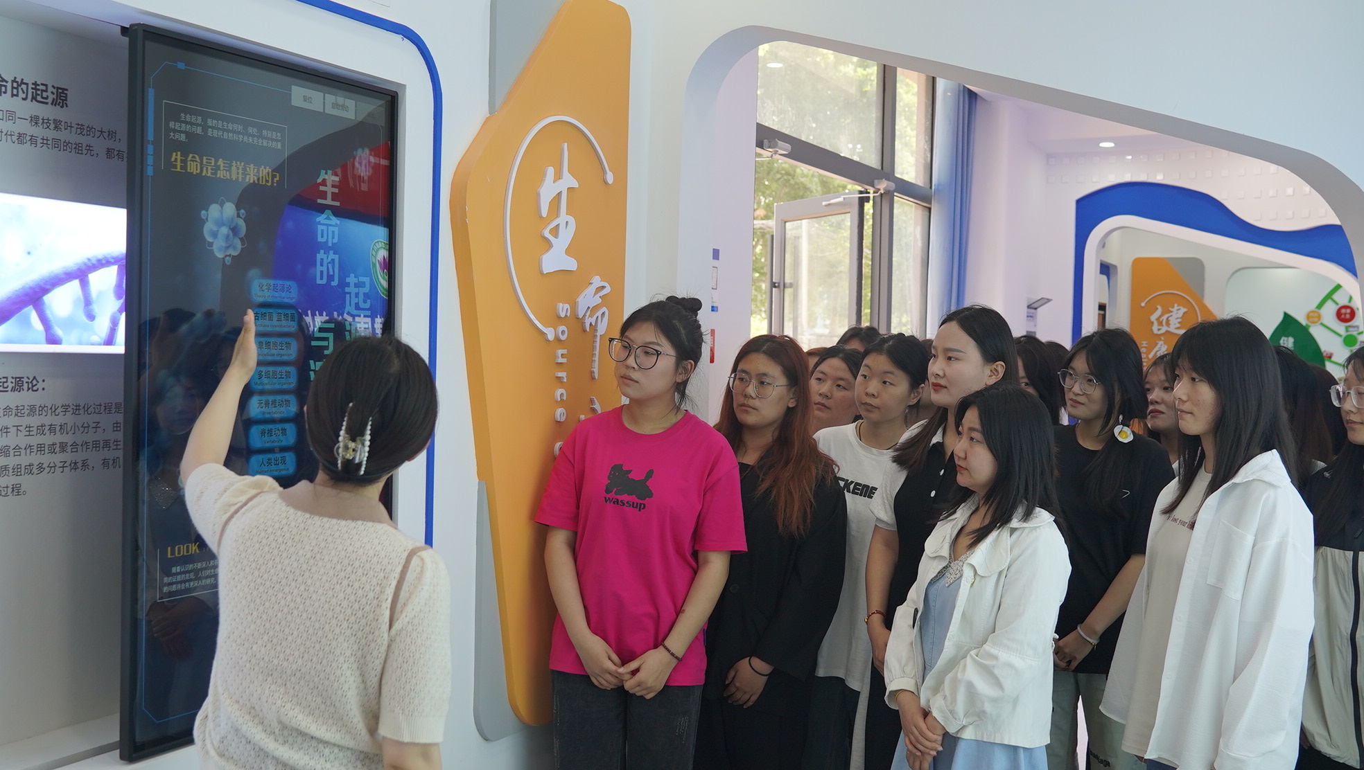 科普馆以人类的全生命周期为主线,设有序厅、生命之源、生命成长之旅、生命救护体验、健康讲堂五大展区。进入科普馆,工作人员运用馆内现代化多媒体应用、虚拟仿真互动等技术,结合图片、文字模型全方位多角度向学生们讲解人类进化史、生命成长史、人体系统以及生命各周期的健康问题,普及常见疾病预防和应急救护知识。