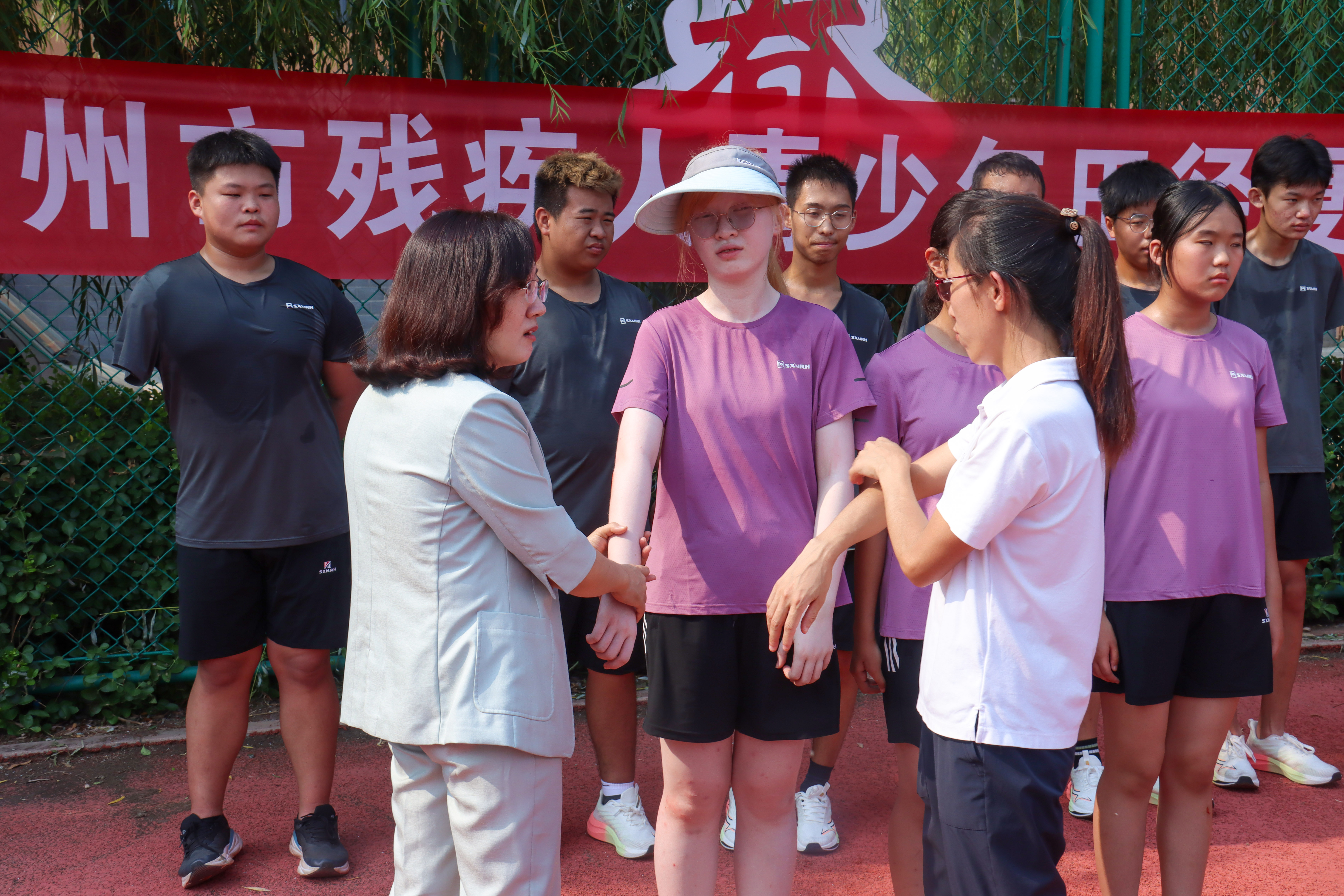 8月16日上午,德州市残联党组书记、理事长张蕾一行来校慰问正在学校集训的德州市残疾人青少年田径夏季训练营的21名运动员,并送去慰问品。禹城市副市长孙登敬,禹城市残联理事长李莹,学校党委副书记张祖军,党委委员、党群工作部部长马东陪同参加。