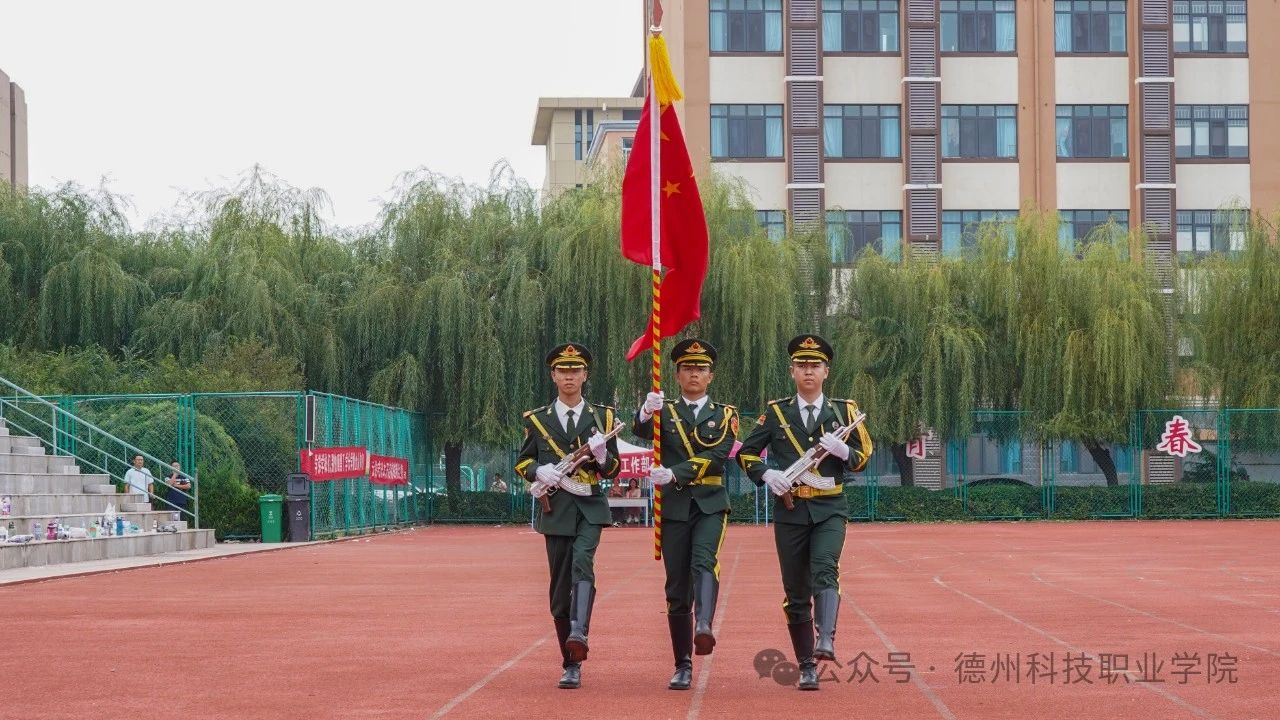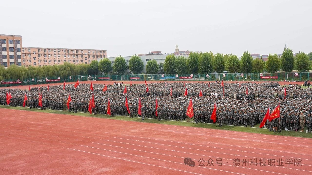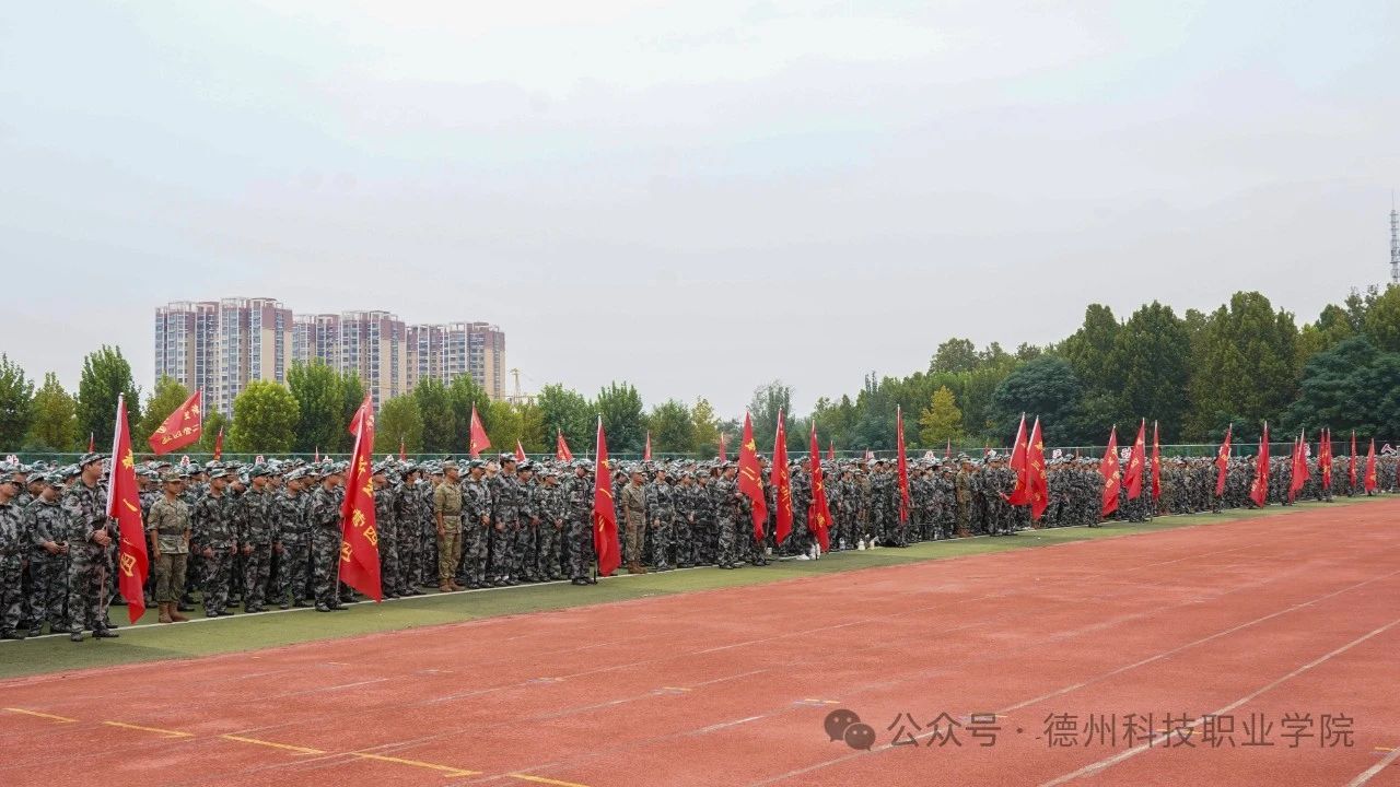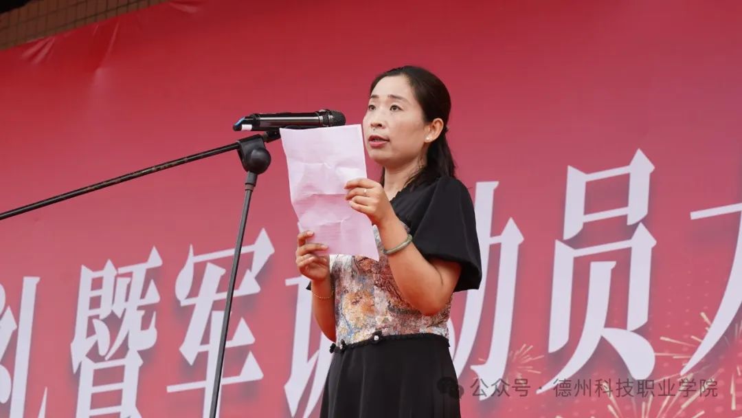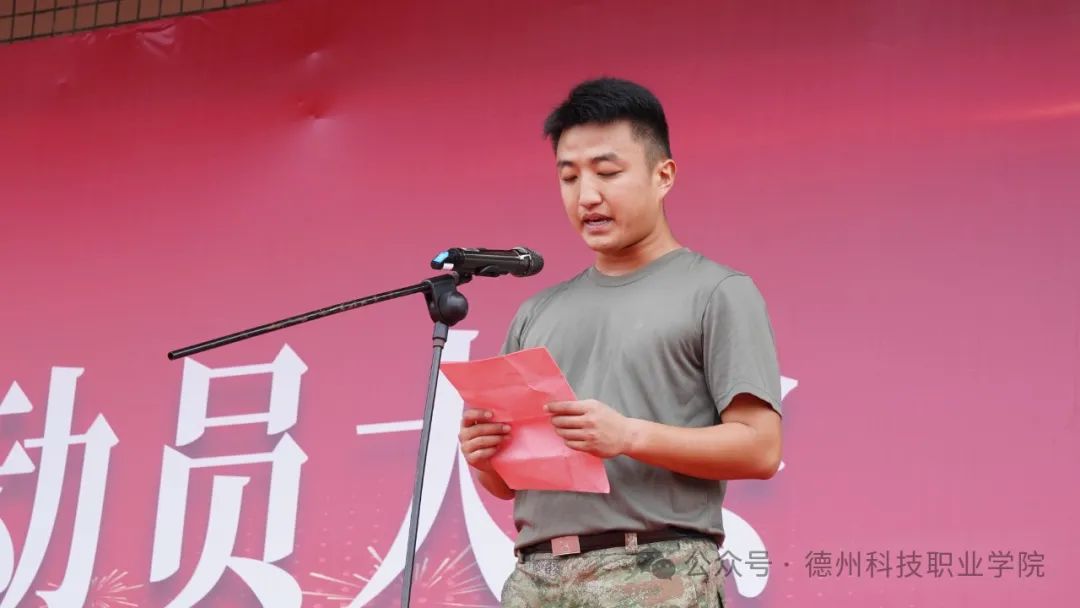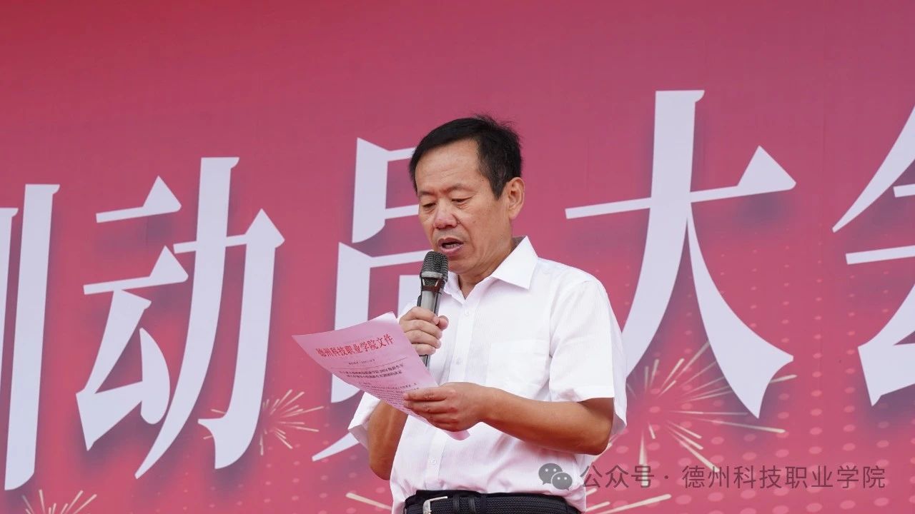 在热烈掌声中,校长亓俊忠作了讲话。亓俊忠首先代表学校全体师生向2024级新同学表示欢迎,向辛勤培育的教师、家人以及此次承训教官们表示感谢。他指出,自办学以来,学校始终肩负教育报国的光荣使命,一代代前辈先贤薪火相传,书写了躬耕教坛、强国有我的志向抱负,一批批德科学子砥砺奋进,绘就了紧跟时代步伐、勇于担当重任的奋斗篇章。