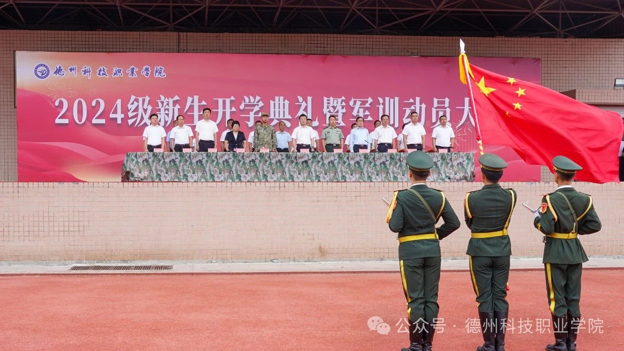 在庄严而热烈的氛围中,2024级新生开学典礼暨军训动员大会正式开幕。国旗护卫队英姿飒爽、铿锵正步,以昂扬的斗志、饱满的激情护送着鲜艳夺目的五星红旗走到主席台前,全体师生肃立注目、奏唱国歌。