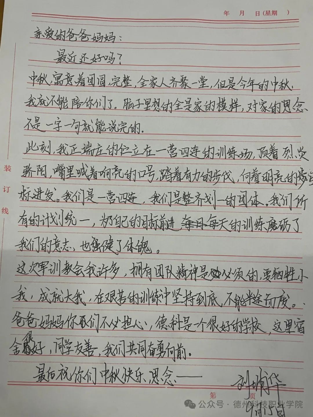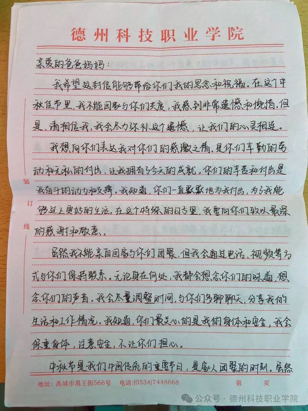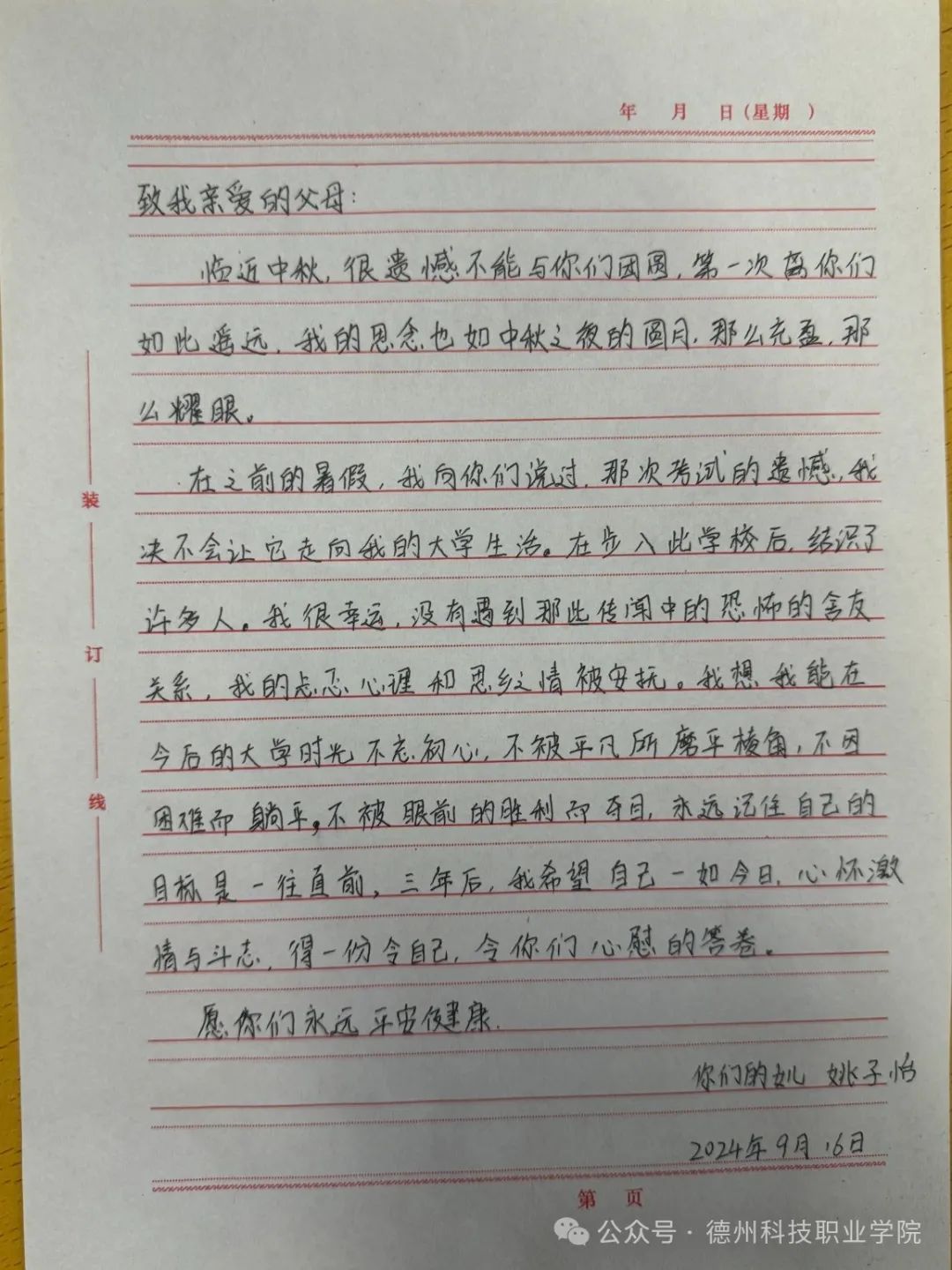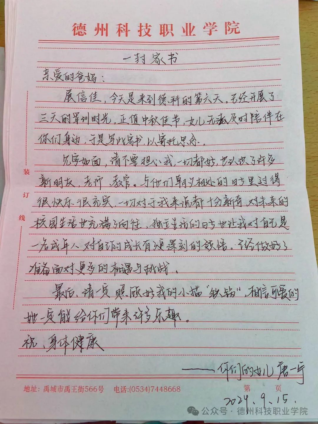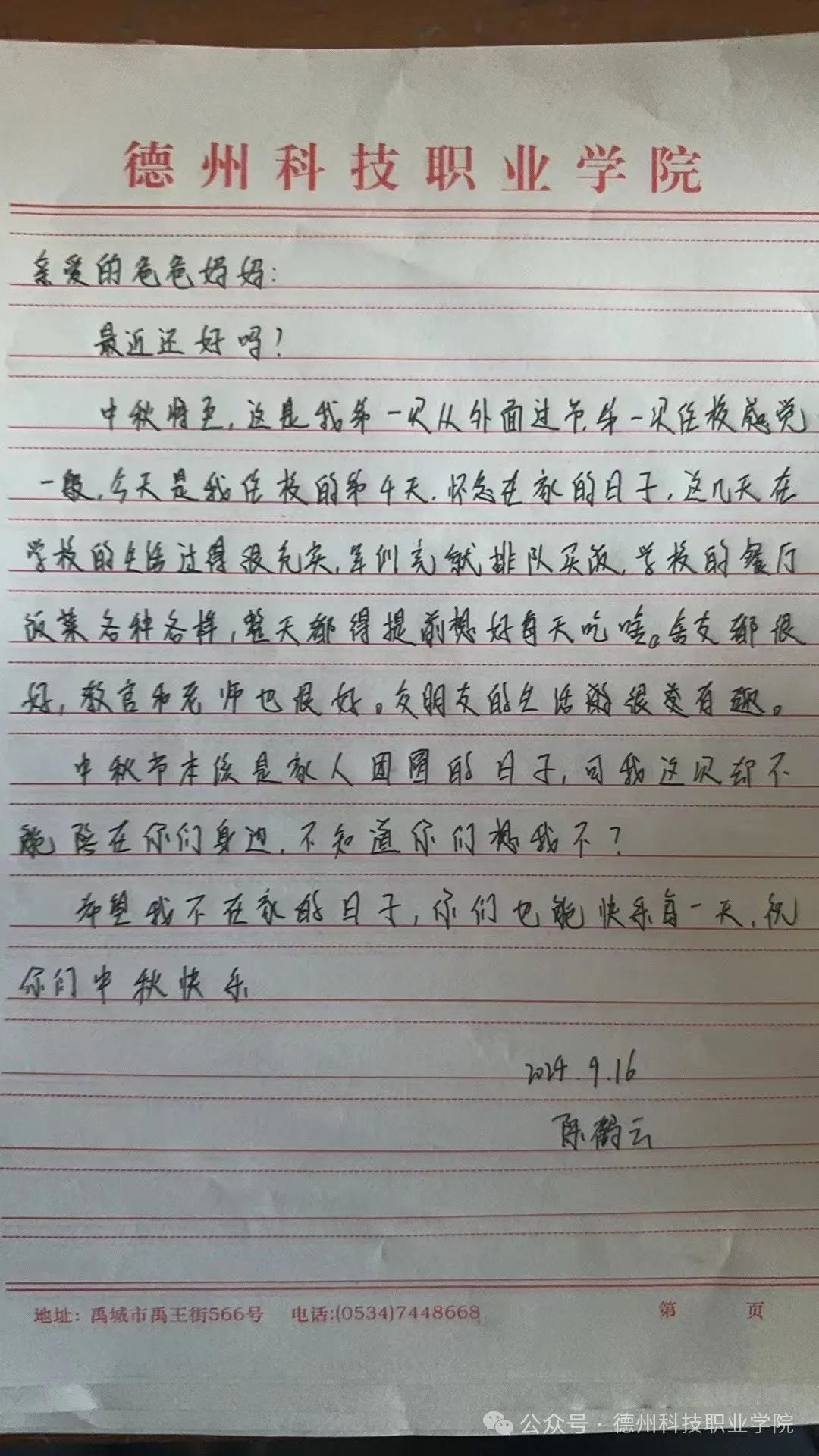 中秋节来临之际,学校举办了为父母写一封家书的活动,在这次活动中,我深刻体会到了在纸上写一封信和在微信上编辑信息的不同,纸质信更能体现出真实的情感,更能表达出我们对父母的爱意。我将对父母的感恩之情,思念之情转换为文字,写在纸上,寄予他们。这次活动,让父母和我之间更加了解。