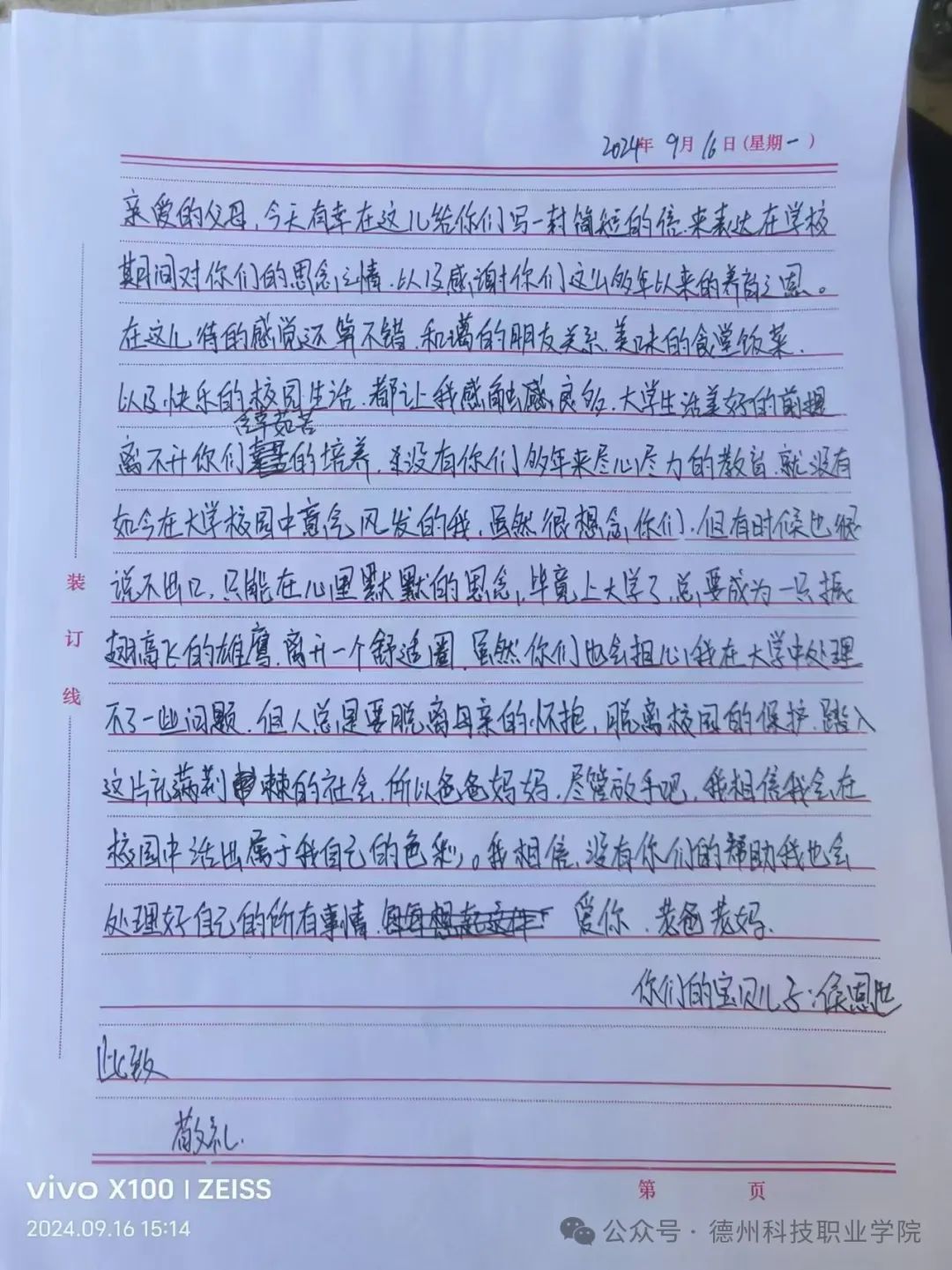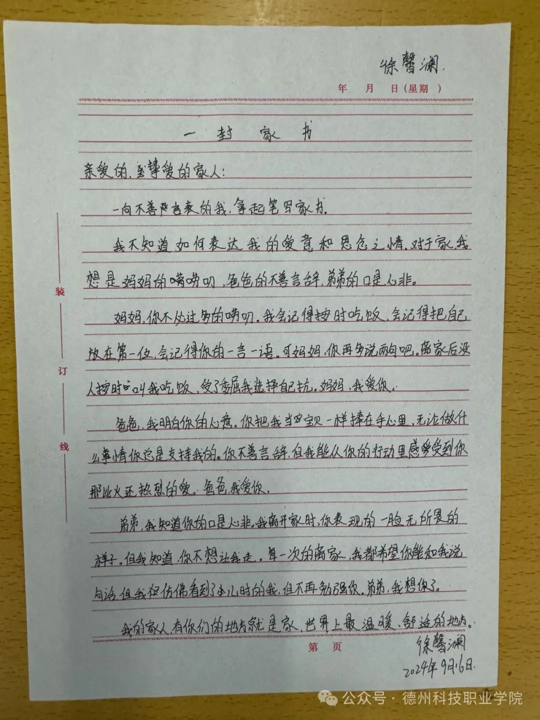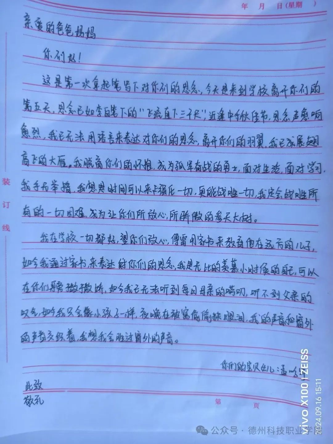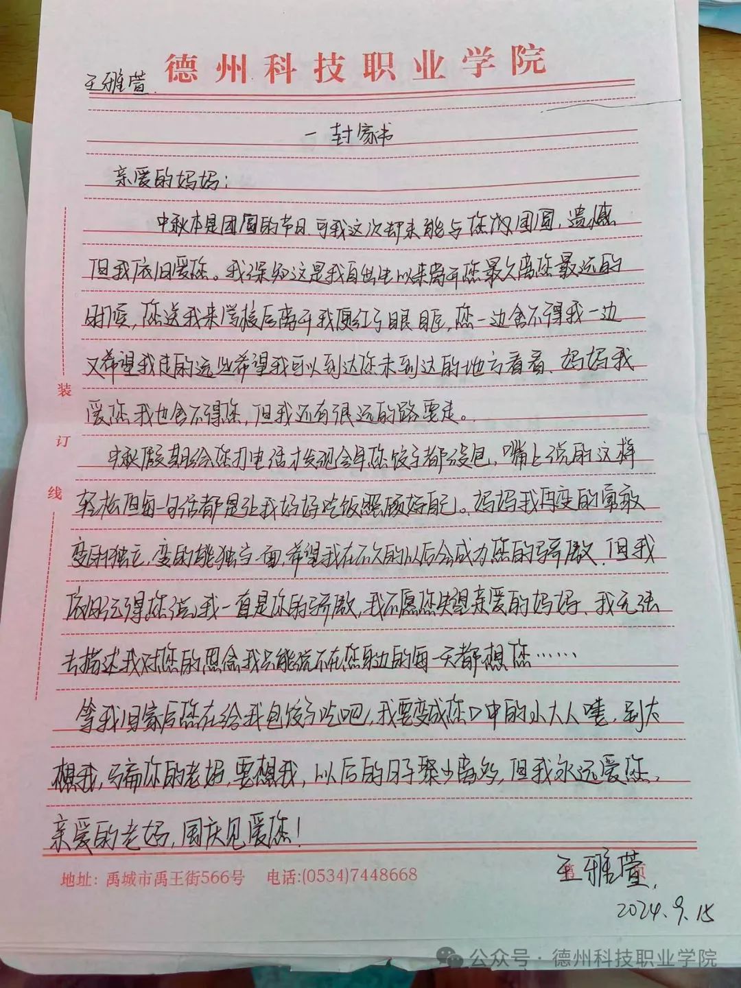 学校举办中秋节一封家书活动,感受到学校用心至极,让我与父母爱的距离又进了一步,他们收到家书之后,没想到我这么含蓄的一个女孩会这么勇敢的表达心中的爱意和情绪。让我感受到沐浴在父母的爱意之下,是无比幸福的事情。