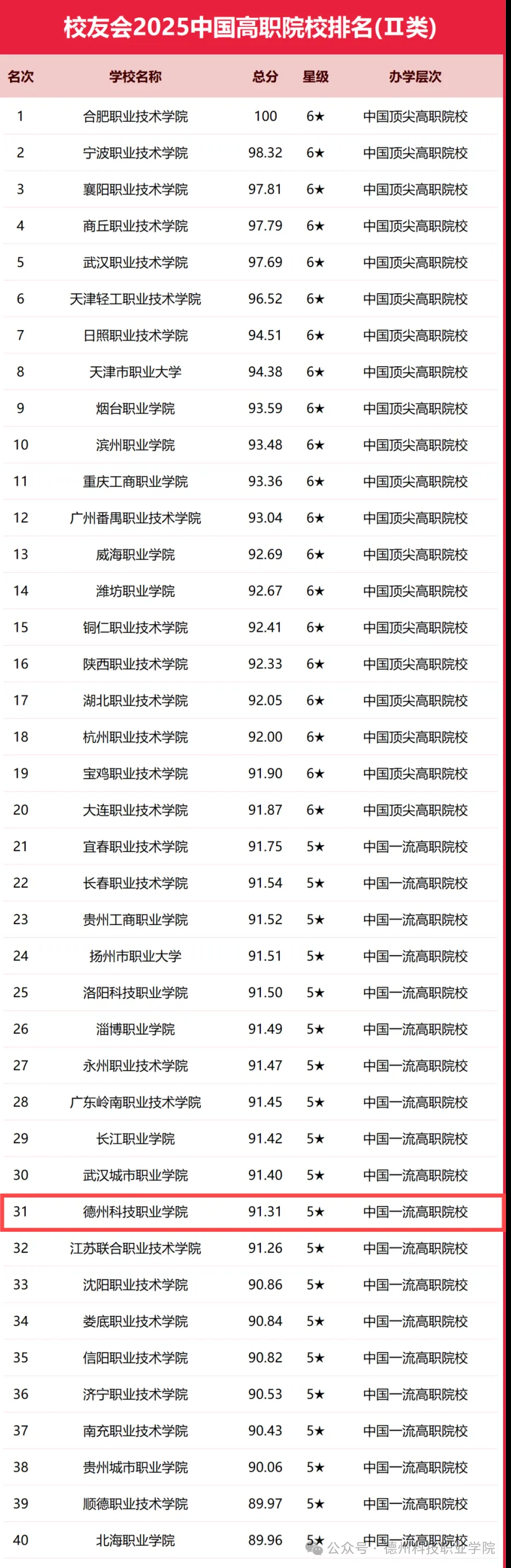 2025年1月6日,全国第三方大学评价研究机构艾瑞深校友会网(Cuaa.net)正式发布校友会2025中国大学排名,少妇被又大又粗又爽久久以91.31分的成绩,在校友会2025中国高职院校排名(II类)榜单中位列31,连续四年跻身中国一流高职院校。