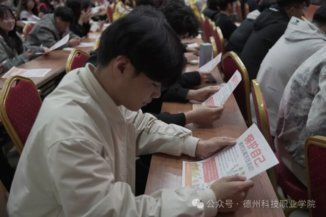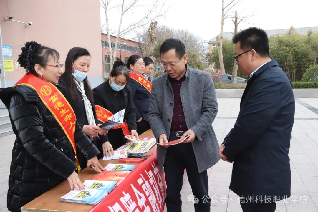 为进一步提高大学生的反洗钱意识,普及金融安全知识,增强维护自身合法权益的能力,在“3·15”国际消费者权益日到来之际,3月13日下午,由中国人民银行德州分行和德州市公安局联合主办的“2025年反洗钱宣传县域行暨3.15金融知识进校园”活动在学校开展。学校党委委员、副校长李进民出席活动。