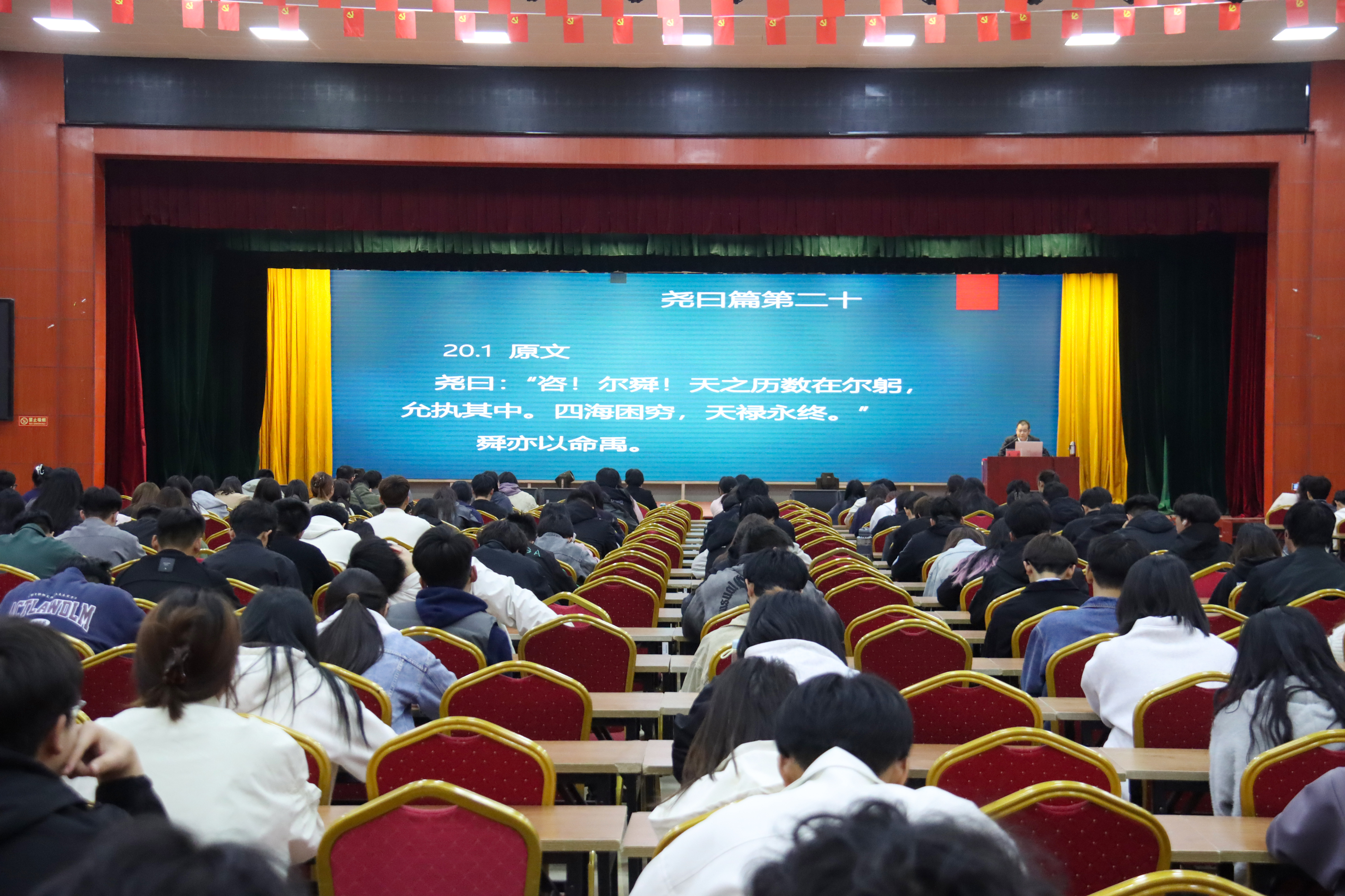 讲座中,王蔚教授围绕《论语》终篇——《论语.尧曰篇第二十》,与师生们深入探讨了孔子及其弟子的言论,分享了儒家关于政治、道德、为人处世等诸多核心思想。本篇共三章,首章主要记叙了尧、舜、禹、商汤及周武王治理天下的重要言论,并进而提出了当今治政的基本原则。