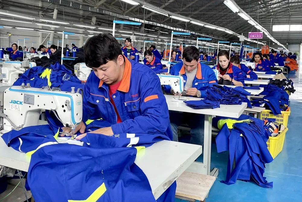 图为10月16日拍摄的京和纺织科技有限公司服装车间。新华社记者 赵旭 摄