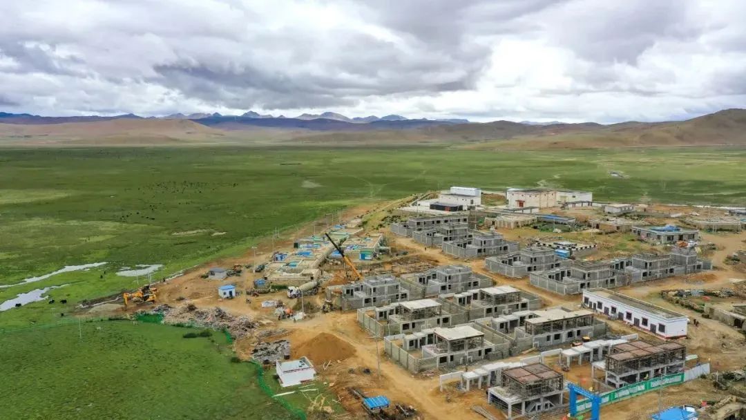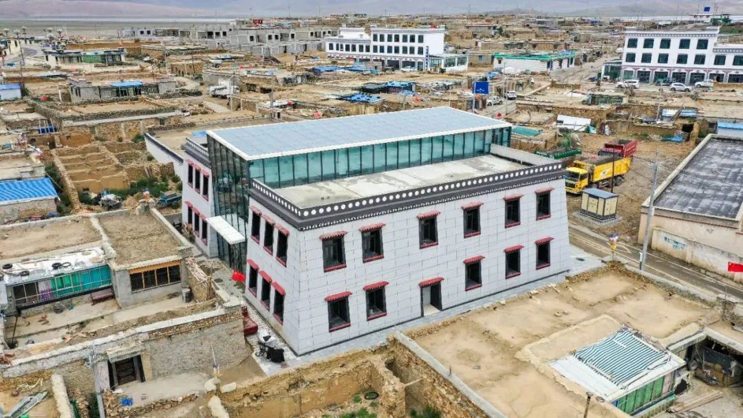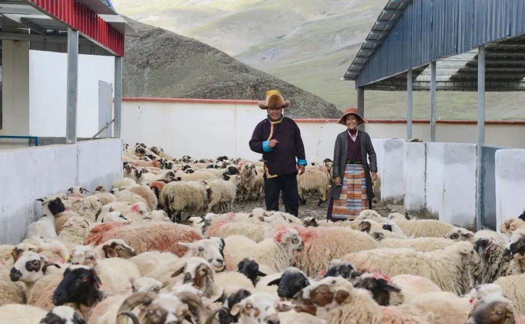 在哲古镇卡珠村,养殖户洛桑和扎西顿珠正在由合肥援建的“澳寒羊”养殖基地清点羊群数量。