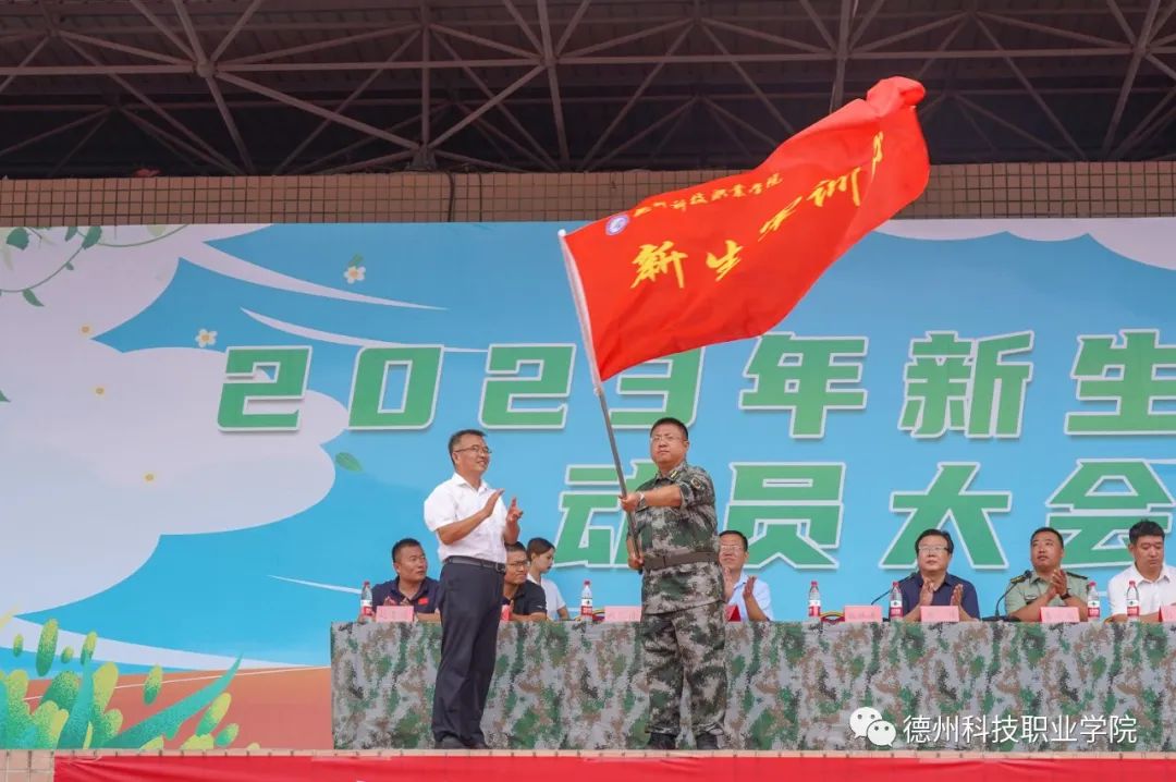 根据大会议程,张祖军向军训团授旗;2023级新生代表作表态发言;全体承训教官们还向2023级新生进行了军事训练科目内容展示。