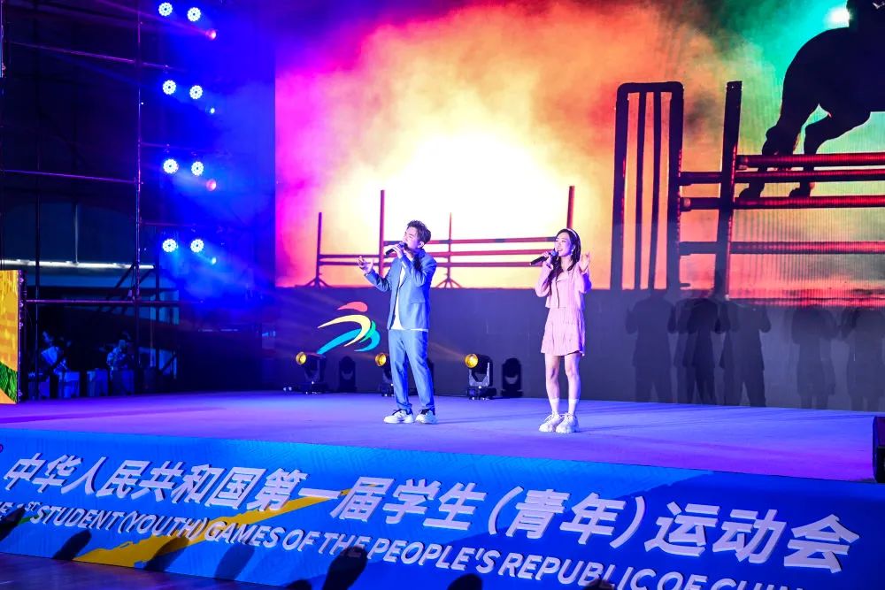 8月13日,歌手在演唱第一届全国学生(青年)运动会会歌《青春遇见》。新华社记者 曹祎铭 摄