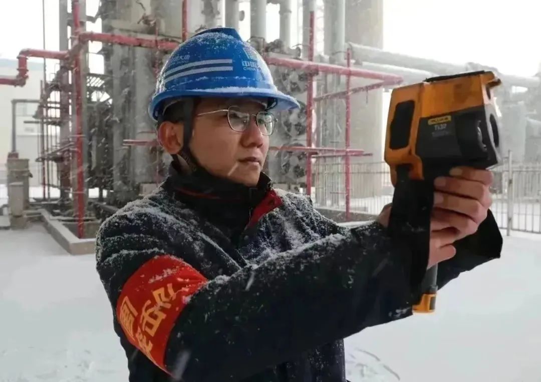 的组合模式,让本就湿滑的地面危险系数倍增,给每小时1次的装置现场巡检增加了难度。,迅速出动、迎难而上,扫雪除冰、检查排凝,分工明确、各司其职。风雪中,青年突击队的红旗和袖标,活跃在炼化装置的每一处,成为白茫茫大地上最美的风景。