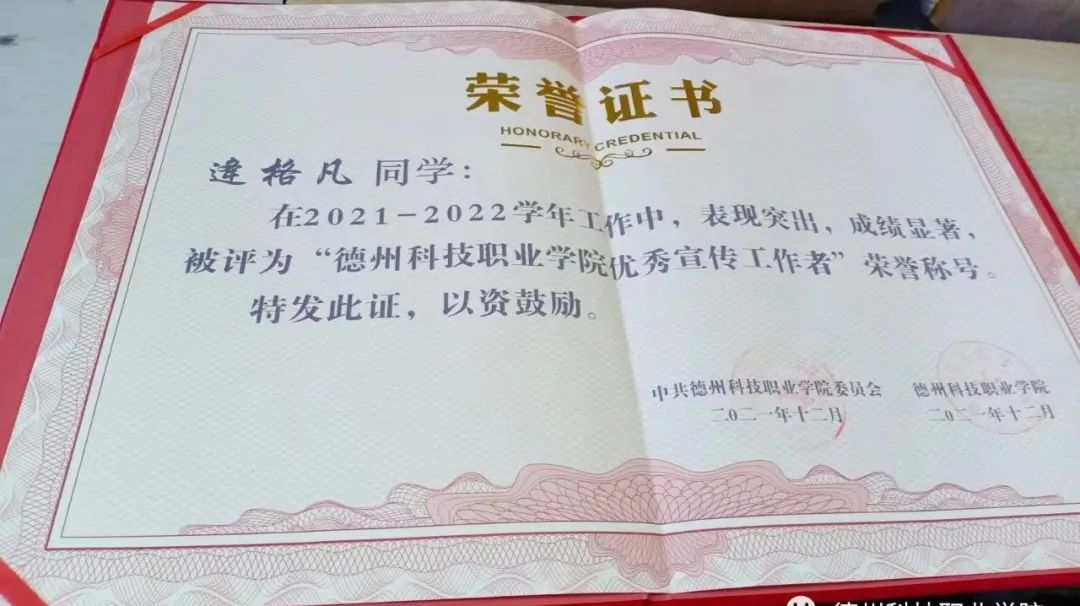 逄格凡,女,中共预备党员,曾担任融媒体中心社团执行团长,在校期间获国家励志奖学金,获省级优秀学生、禹城市高校好网民、学院“最美大学生”“优秀青年志愿者”“优秀学生”、融媒体中心“优秀工作先进个人”“优秀文艺工作者”“优秀宣传工作者”等称号,现于禹城市人民医院实习。
