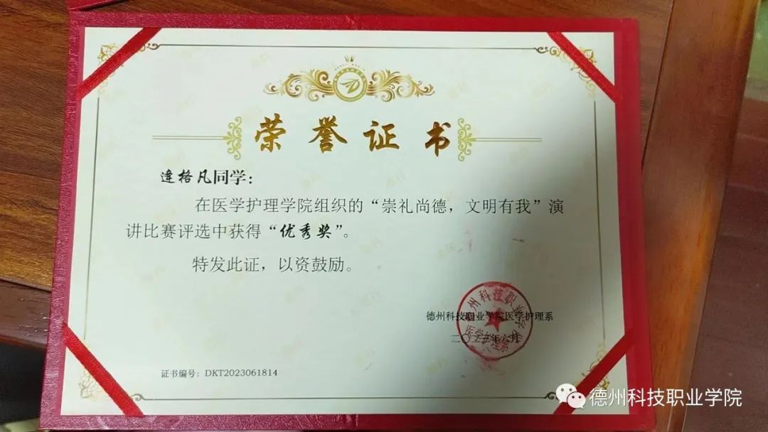 在校期间,发挥专业所学、提高技能水平,积极参加各类技能比赛,获2022年山东省大学生医养健康创新创业大赛护理专项竞技组三等奖、2023年山东省大学生医养健康创新创业大赛护理专项竞技组二等奖、第十六届山东省职业院校技能大赛护理技能赛项三等奖、校级心肺复苏一等奖等奖项。