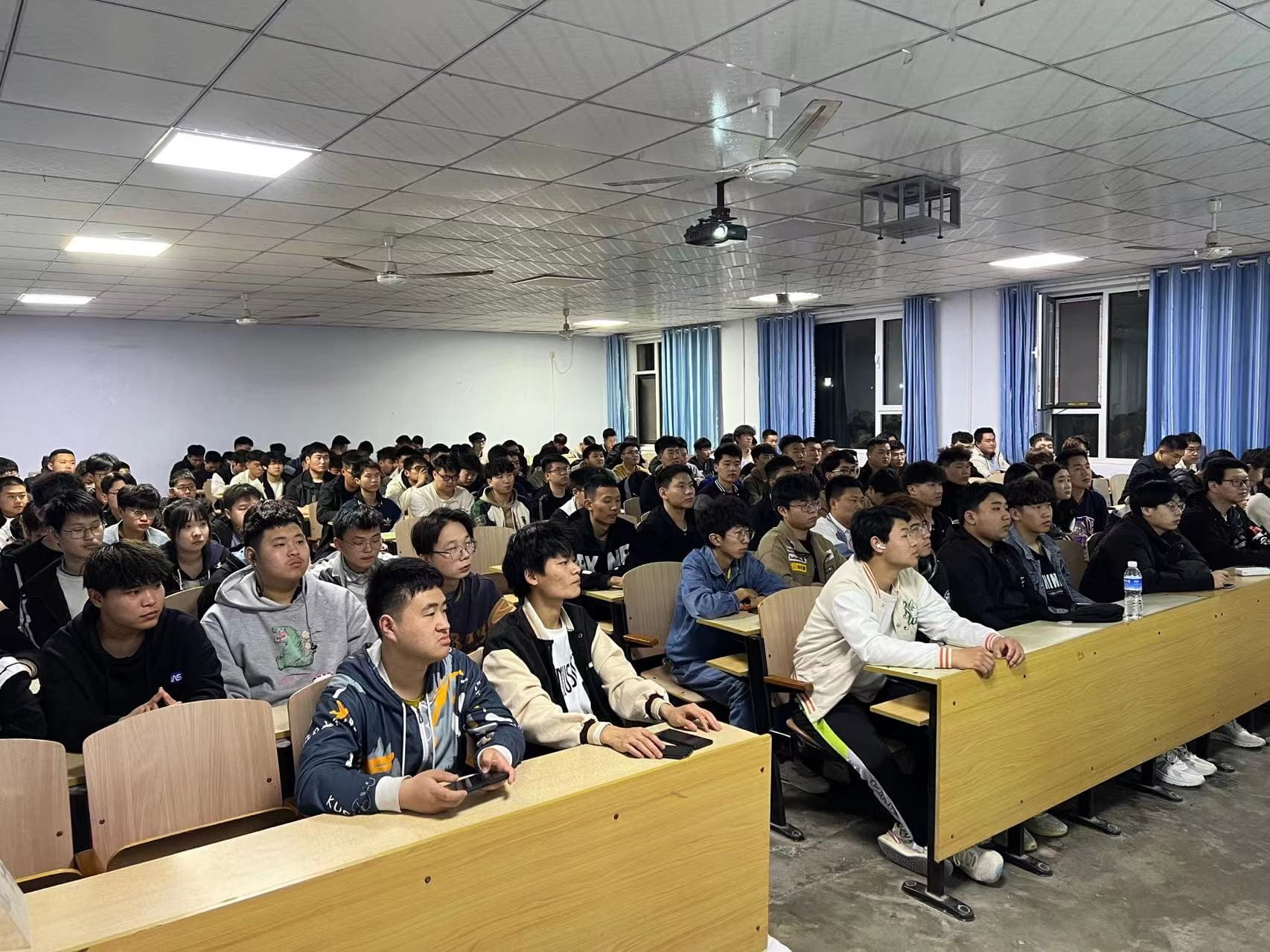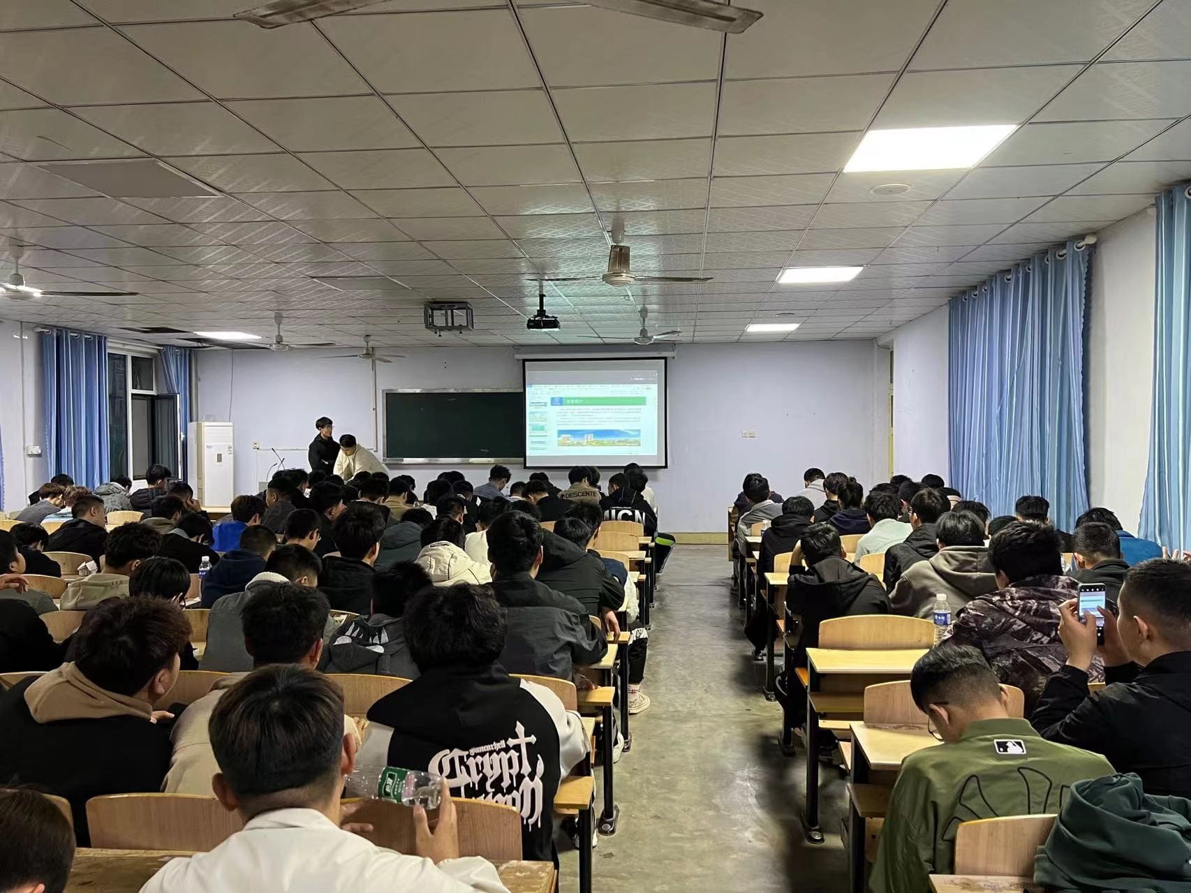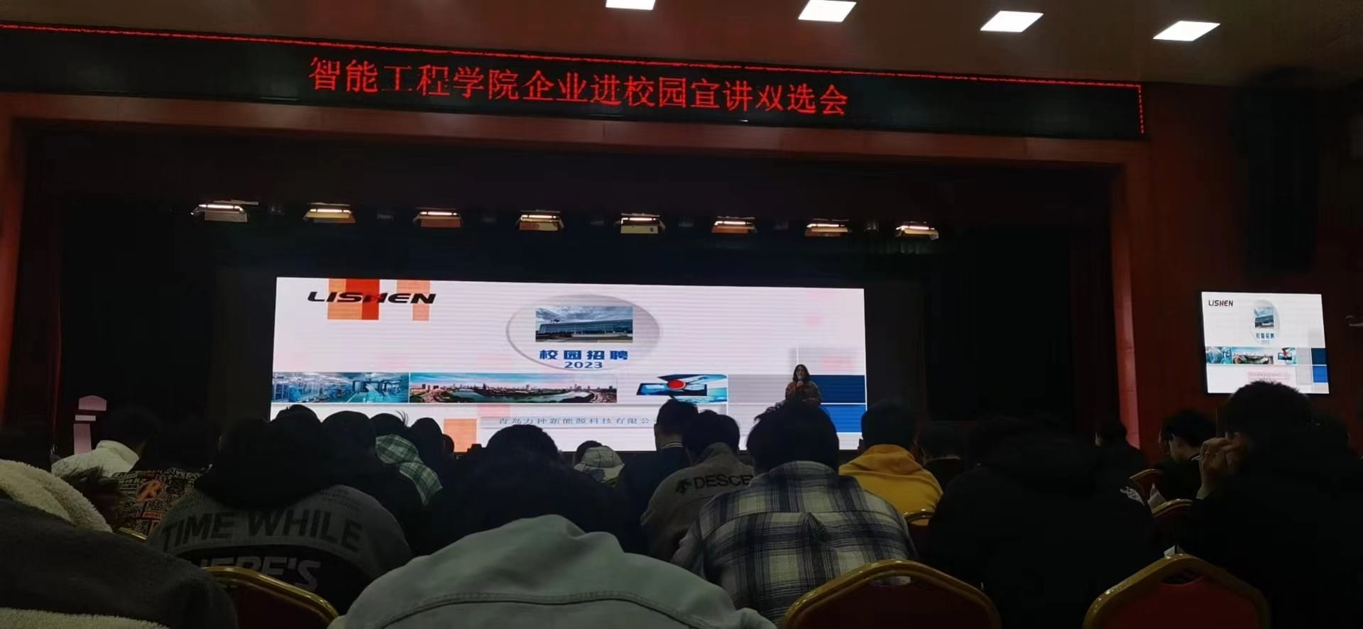 首先,公司负责人介绍了公司的产品和概况,发展历史,未来规划等,在场学生对招聘单位有了一定的了解。接着,他介绍了公司的薪资福利、招聘岗位、面试流程、报到规则等,并与现场同学们进行互动问答,让同学们充分了解企业的需求和信息。最后,他与同学们分享自己工作经验以及多年心得体会,如何确立人生的目标,从而让自己获得荣誉感和使命感。