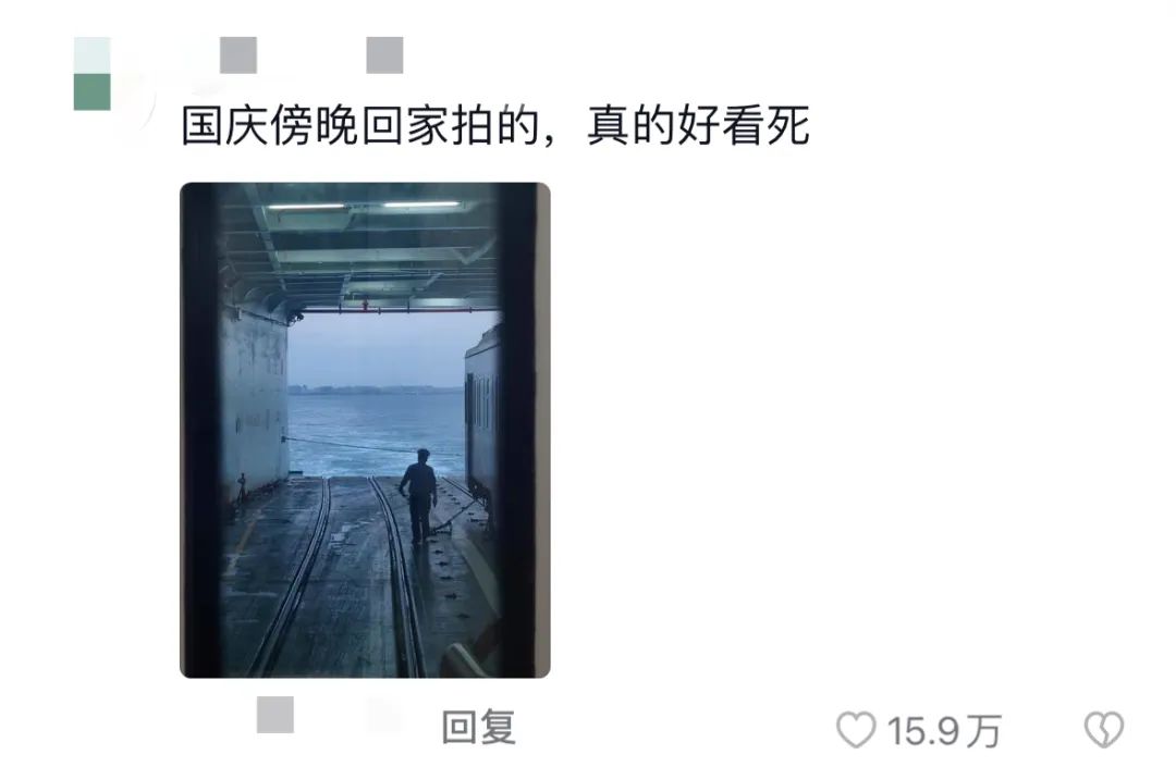 看不到列车与轮渡的距离、角度