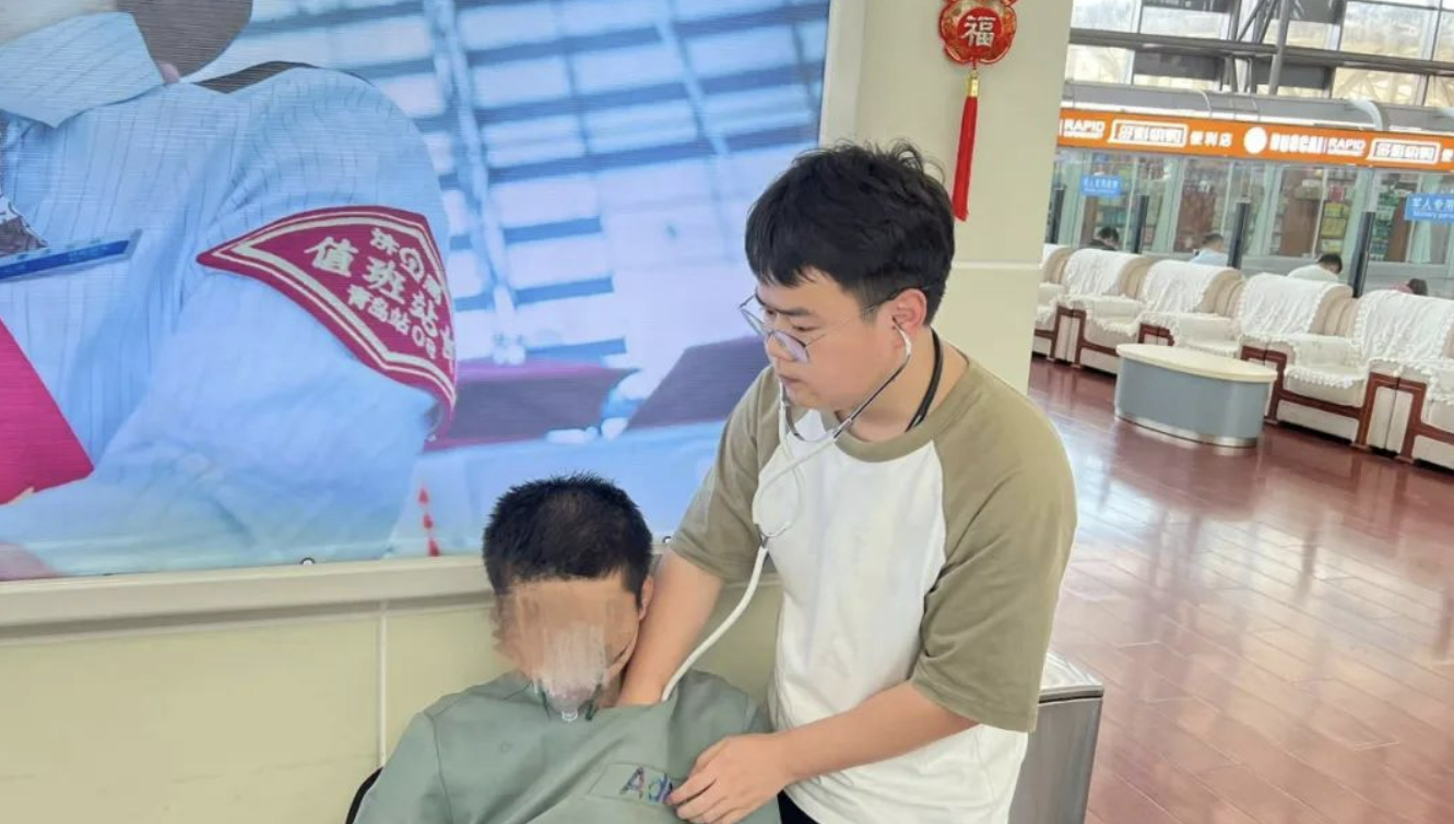 立刻跑回候车室对患者进行急救
