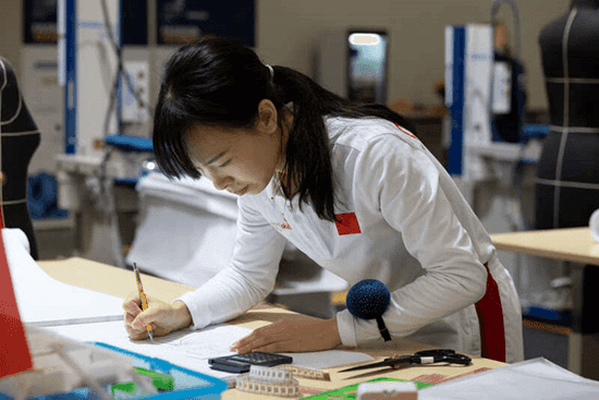 而在世界技能大赛的舞台上,对一件衣服的技能要求则更为严格。从设计、制版排料、服装制作再到服装外观,每个环节都设置了时长要求,必须要在规定时间内高质量高标准地完成每个环节的制作工序。
