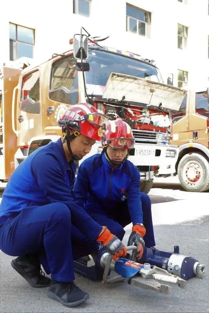 “出发时撒一条,跑动中接一条,两条消防水带连接时,接口要对准,听到‘咔嚓’声才算接好。一定要多练苦练,才能在黑暗环境下做到盲操……”在青海省西宁市城西区西川南路消防救援站,一位戴着头盔的藏族消防战士正在向队员讲解、演示消防水带的使用要领。
