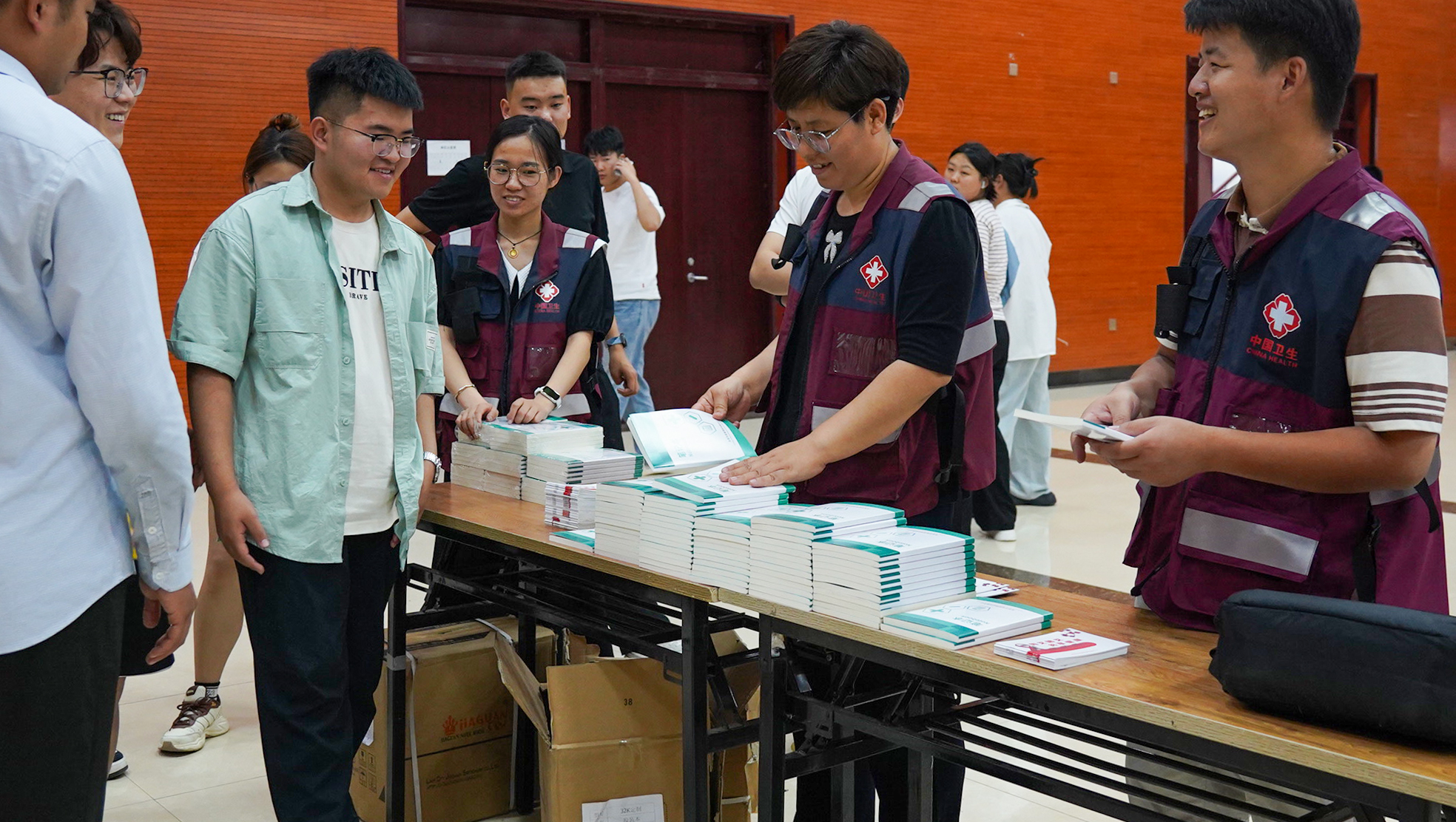 讲座结束后,现场工作人员为学生们发放艾滋病宣传手册、笔记本、手机支架及水杯等,宣传手册图文结合、生动详实,通俗易懂。工作人员针对学生们的问题耐心解答,让同学们更深入、更全面学会预防艾滋病及相关知识。