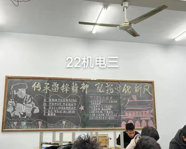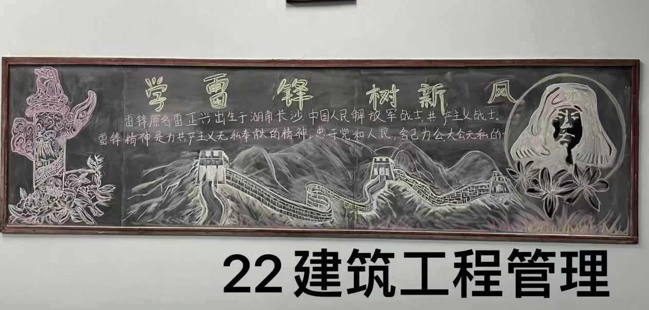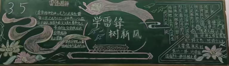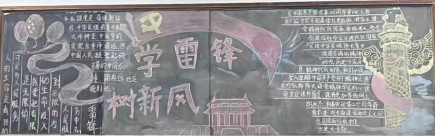 岁序常易,华章日新。半个多世纪以来,雷锋精神犹如和煦阳光,温暖着无数人的心田,激励着无数志愿服务者无私奉献、助人为乐。斯人虽远去,精神永长存。今年是毛泽东等老一辈革命家为雷锋同志题词60周年,60年来,学雷锋活动在全国持续深入开展,雷锋的名字家喻户晓,雷锋的事迹深入人心,雷锋精神滋养着一代代中华儿女的心灵。为了弘扬雷锋精神,团总支开展了此次“学雷锋,树新风”黑板报评比活动。