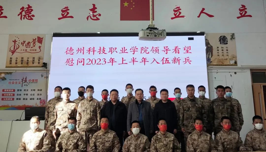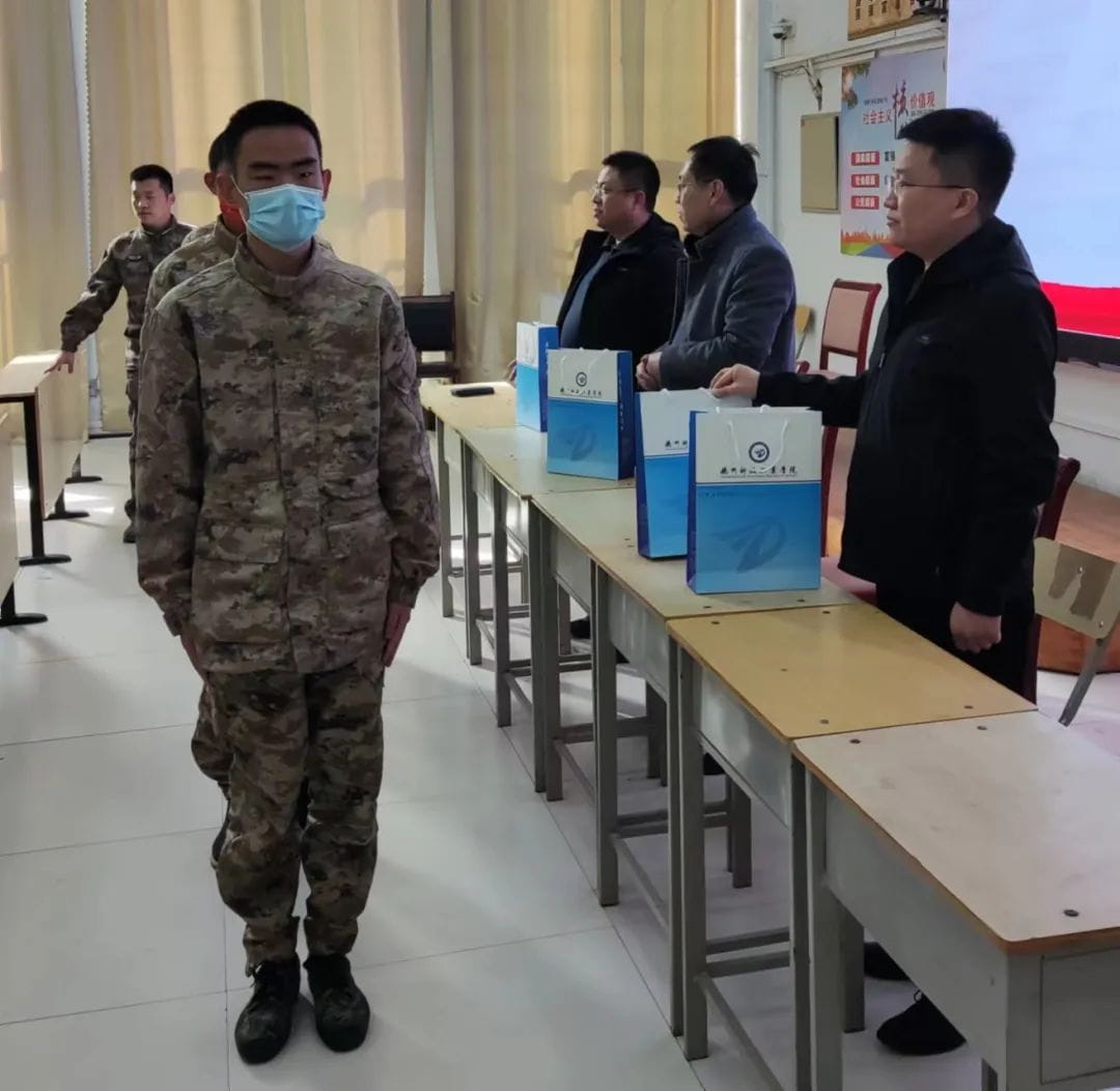 3月15日下午,学院党委委员、副院长李进民一行三人前往禹城市新兵役前训练基地,看望慰问从我院应征报名正在参加役前教育的16名新兵。学院党委委员、党政办主任、团委书记孙强强,学工处副处长、武装部副部长刘艺博参加活动。