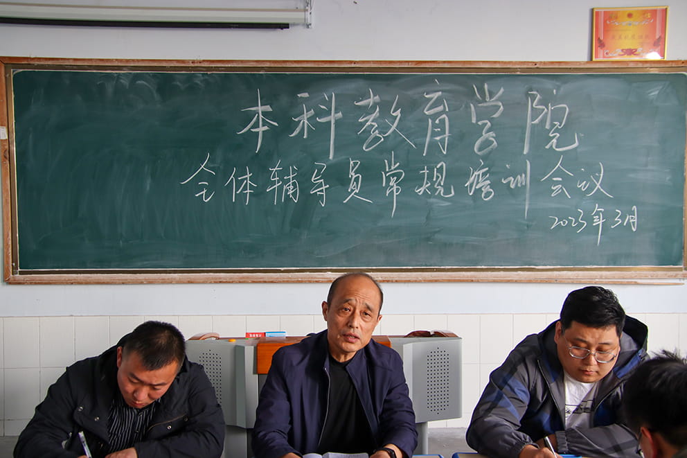 为提高辅导员的基本业务能力水平,提升综合文化素养,全面落实立德树人的根本任务。 3月30日,本科教育学院召开辅导员业务能力第二期常规培训。本科教育学院系主任冉祥勇出席会议并发表重要讲话,学生科及全体辅导员参加会议。