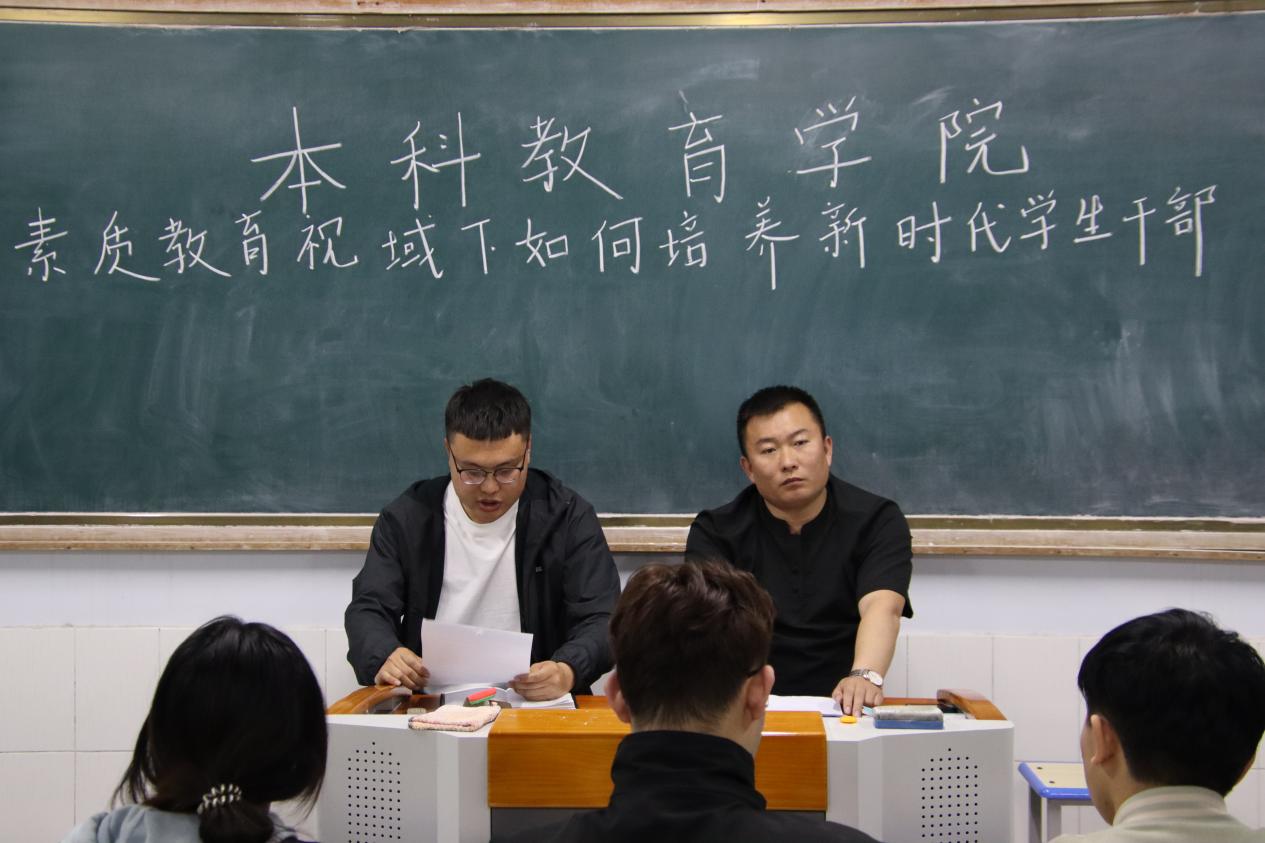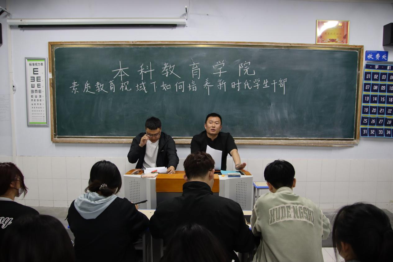 为深入学习贯彻习近平新时代中国特色社会主义思想和党的二十大精神,做好“三支队伍”的建设,全面服务好学生的日常学习生活。4月11日,本科教育学院学生召开了素质教育视域下如何培养新时代学生干部主题会议。